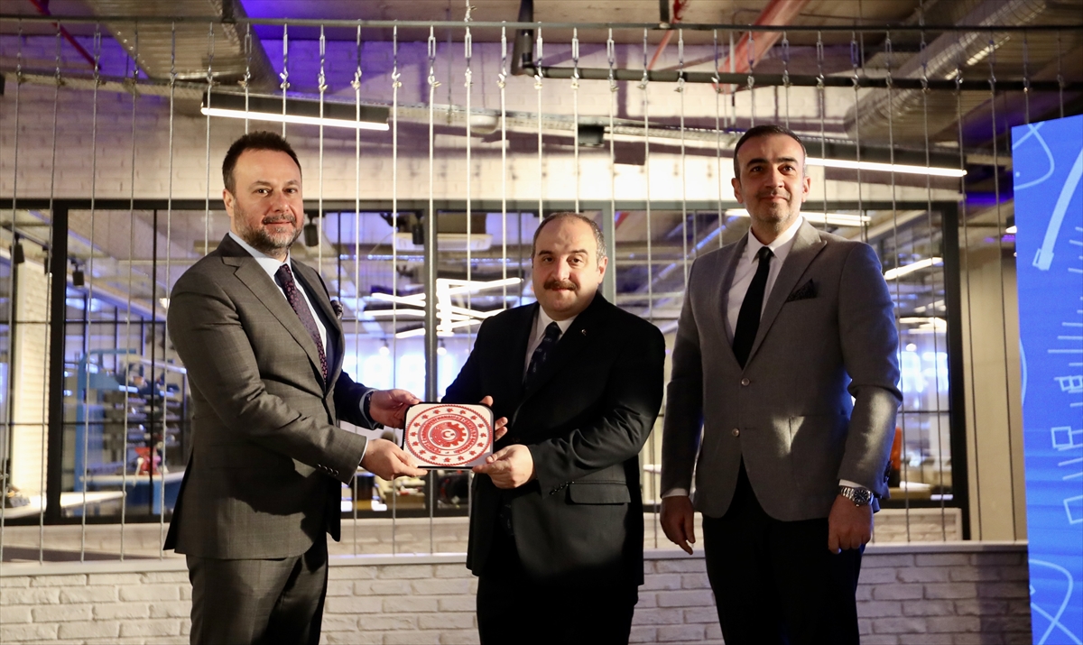 Yücelen, konuşmaların ardından merkezde üç boyutlu yazıcıyla üretilen Sanayi ve Teknoloji Bakanlığı logosunu Bakan Varank'a hediye etti.