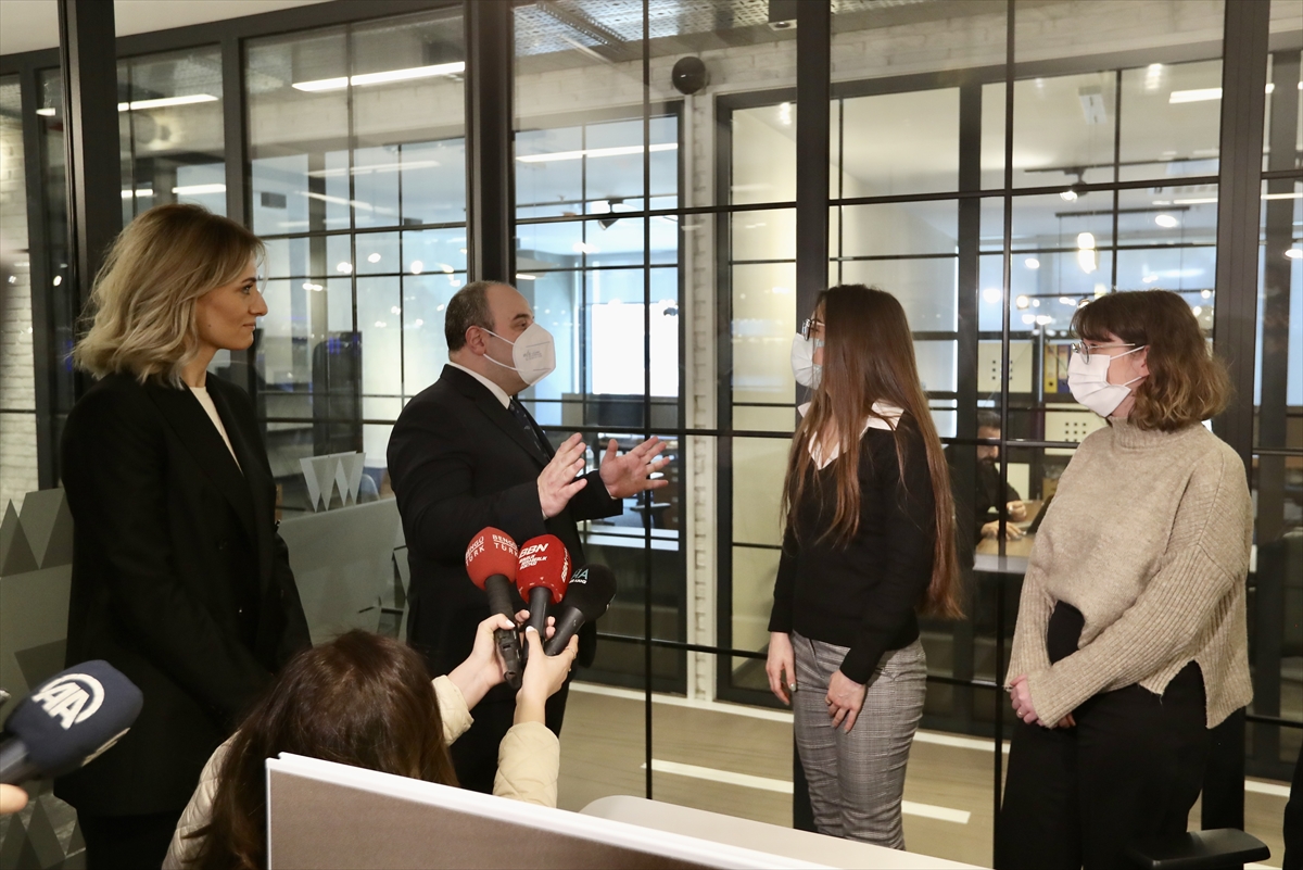 Çalışanlardan merkeze ve iş konularına ilişkin bilgi alan Varank, Bakanlık olarak TEKMER gibi yapılarla girişimcilere destek vermeye çalıştıklarını ifade etti.
