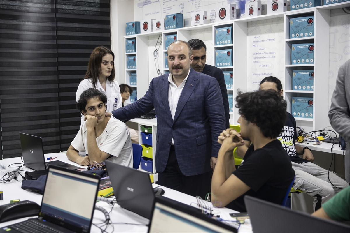 Ziyaretinde, robotik, bilim ve teknoloji, yazılım atölyesi ile metaverse sınıflarını gezerek, incelemelerde bulunan Bakan Varank, yürütülen çalışmalara ilişkin bilgi aldı.
