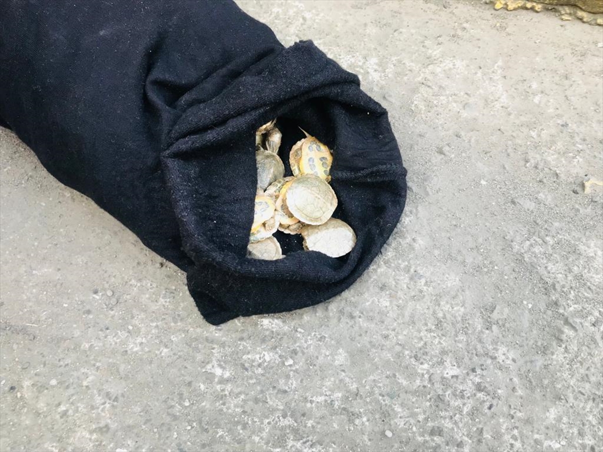 Ekiplerce söz konusu poşetlere gizlenmiş 1100 su kaplumbağası ele geçirildi.