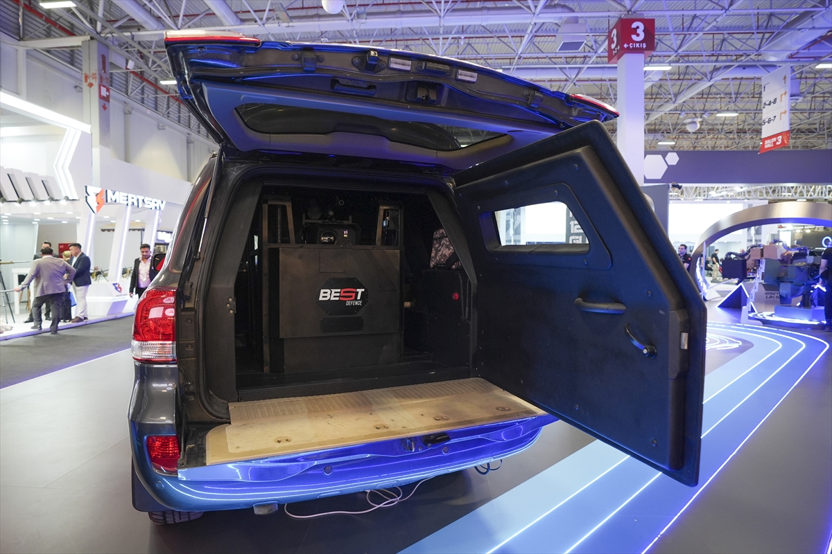 Karaş, "Özellikle infial yaratılacak ortamlarda veya gizli bir operasyon yapılmak istendiği zaman o ortama silahla girilmek istenmiyor. Bu tür durumlarda, bu sistemlere başvurulabiliyor. Bu sistemin özelliği şu, diğer sistemler direkt olarak aracın üzerine veya sabit bir platforma monte edilebiliyor. Burada ise yaptığımız bir aracın içine biz aracın konfigürasyonuna göre bir tasarım yapıyoruz." diye konuştu.