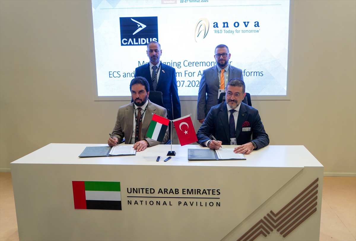Türkiye'nin önde gelen mühendislik ve savunma sanayisi firmalarından Anova Ar-Ge Teknolojileri, Birleşik Arap Emirlikleri merkezli Calidus UAE ile 17. Uluslararası Savunma Sanayii Fuarı (IDEF 2025) kapsamında önemli bir işbirliğine imza attı. Taraflar arasında imzalanan mutabakat zaptı, Calidus'un mevcut ve gelecekteki hava platformları için Çevresel İklimlendirme Sistemleri (Environmental Control Systems – ECS) geliştirilmesini kapsıyor. Anlaşmayı Calidus Üst Yöneticisi (CEO) Khalifa Murad Abdul Rahman Ali Al Blooshi ve Anova Ar-Ge Genel Müdürü Dr. Emre Öztürk imzaladı.