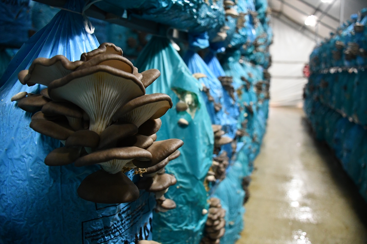 BİLECİK (AA) – ATAHAN GEZER / MUHSİN ARSLAN – Kent yaşamını bırakıp Bilecik'in İnhisar ilçesine bağlı Koyunlu köyüne yerleşen Selin ve Erhan Erikli çifti, devlet desteğiyle kurdukları tesiste istiridye mantarı yetiştiriyor.