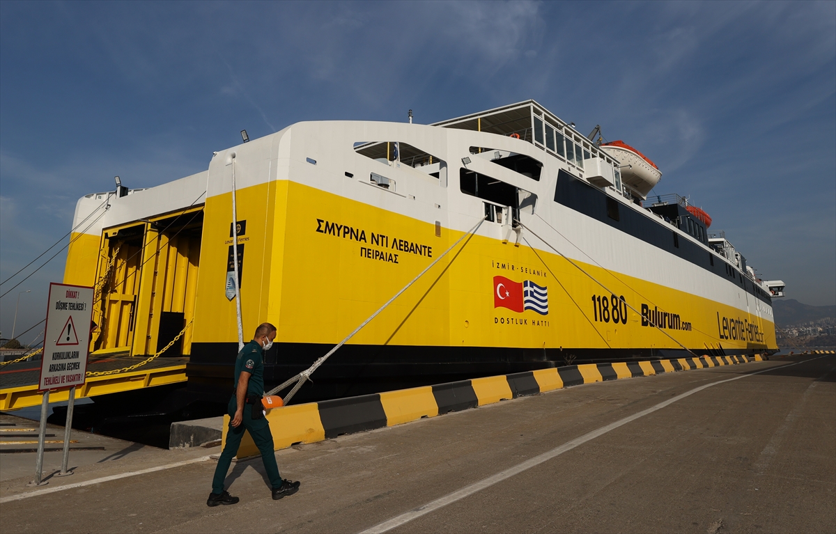İZMİR (AA) – İzmir ile Yunanistan'ın Selanik şehri arasında yapılacak seferler kapsamında "Smyrna di Levante" adlı ilk ropax (araç ve yolcu taşıyan gemi) İzmir Limanı'na ulaştı.