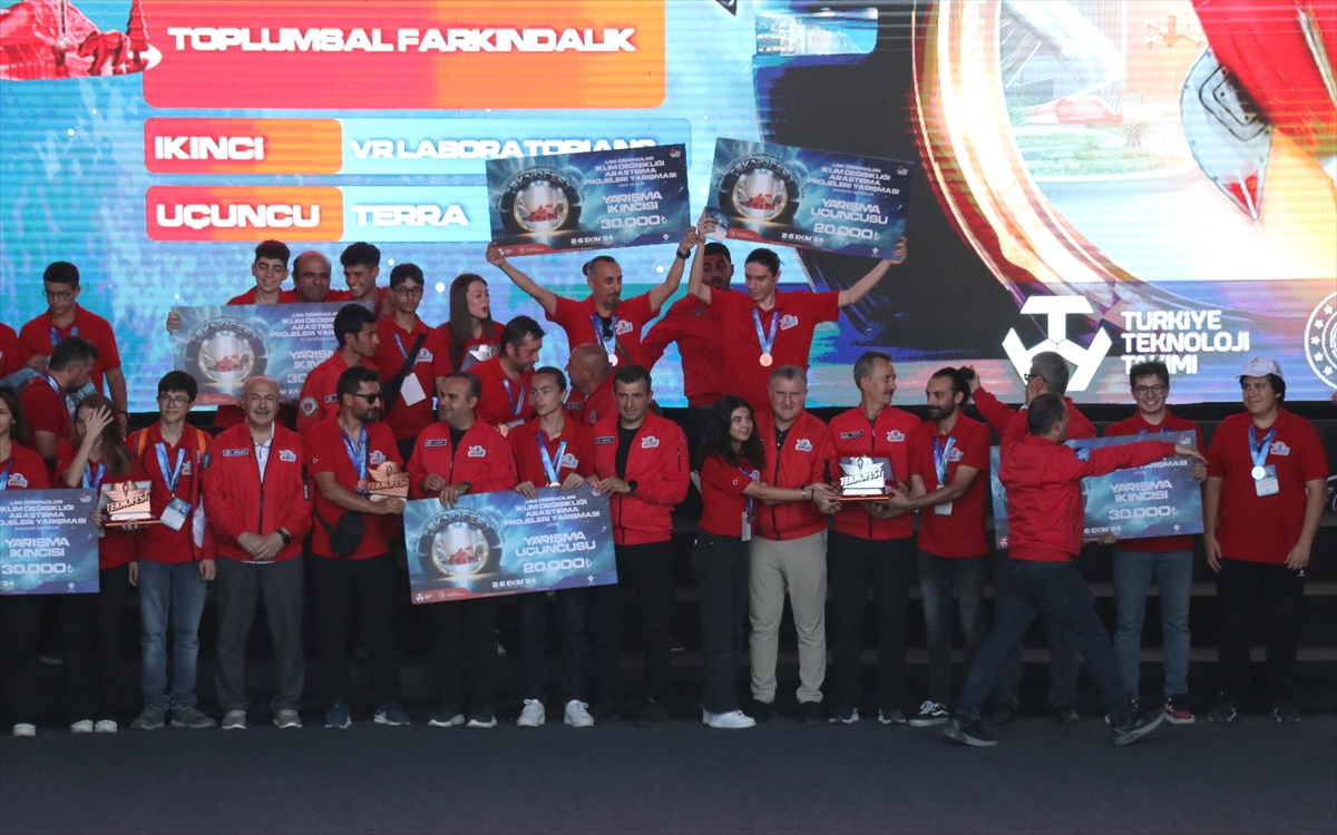 Konuşmanın ardından TEKNOFEST Şampiyonlar Ligi'nde dereceye giren takımlara ödülleri verildi.