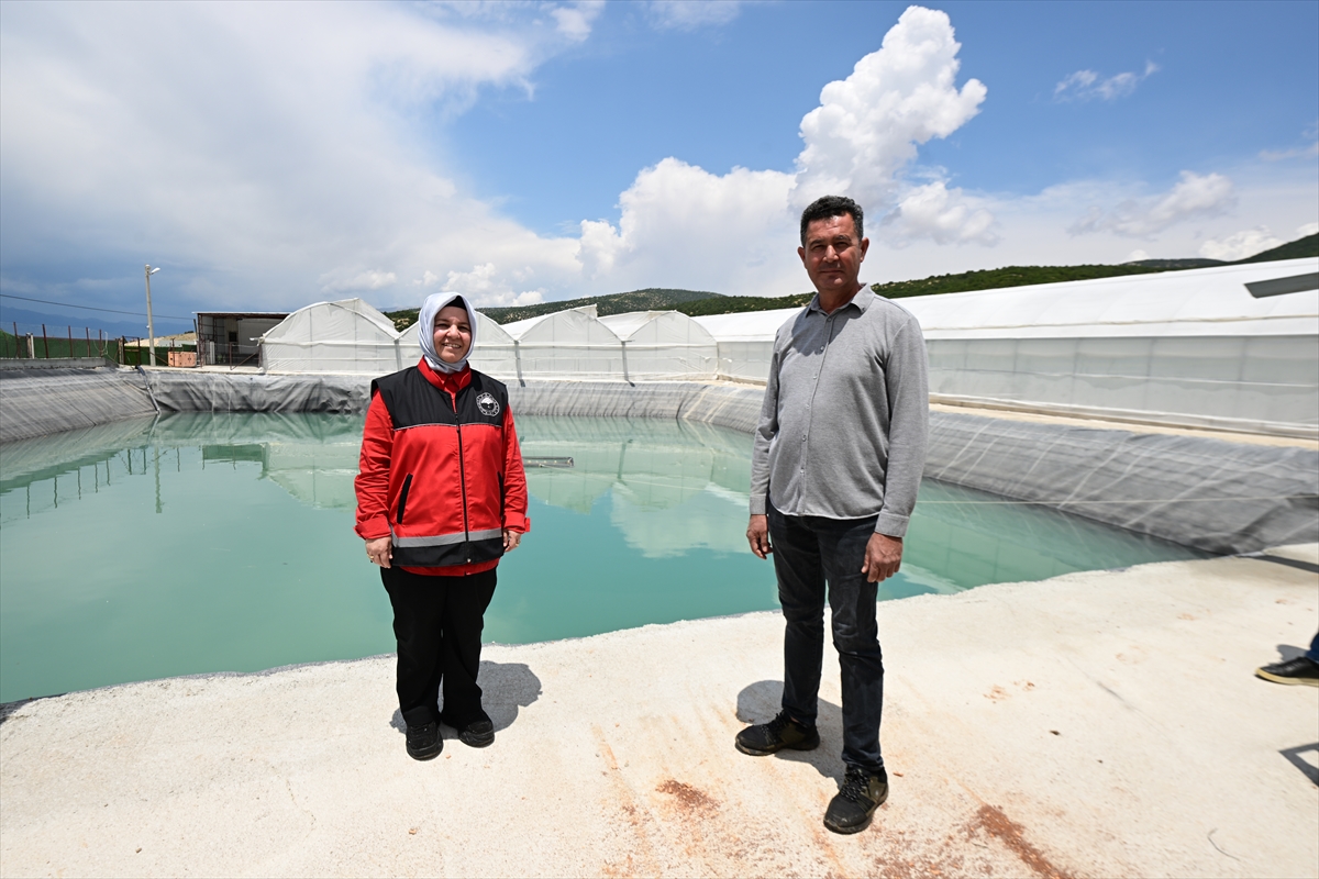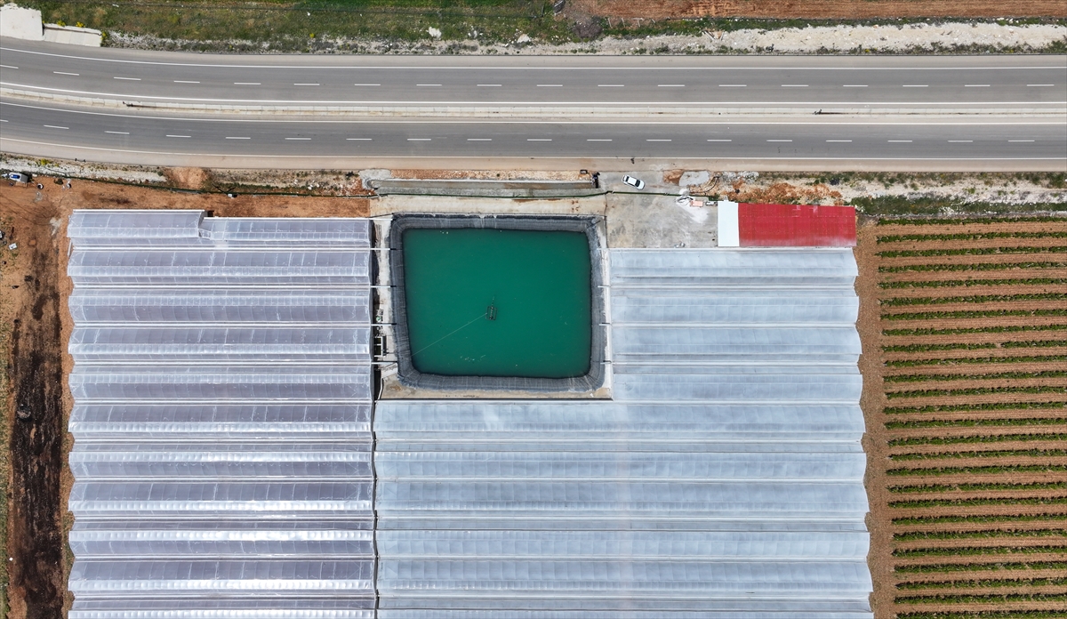 Proje kapsamında ilçedeki bazı çiftçiler, seraların üzerine monte ettikleri oluklar ve kanallar aracılığıyla yağmur sularını yapay havuzlarda biriktiriyor.