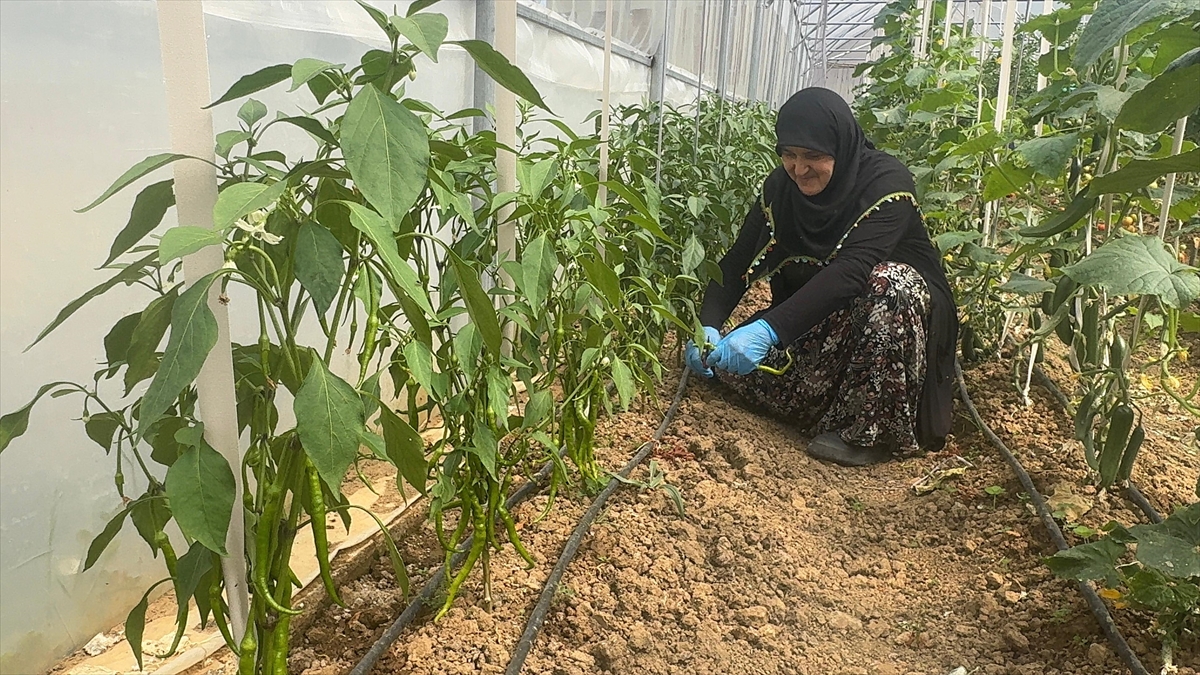 Dört çocuk annesi Özyılmaz, serada domates, salatalık, biber, patlıcan, kabak ve karpuz yetiştiriyor.