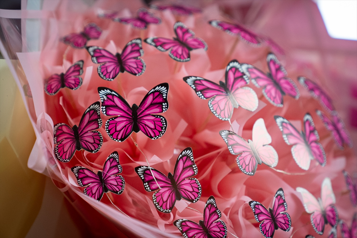 Sevgililer Günü'ne özel hazırlanan "kelebek buketleri" de alternatif hediyeler arasında yer alıyor.