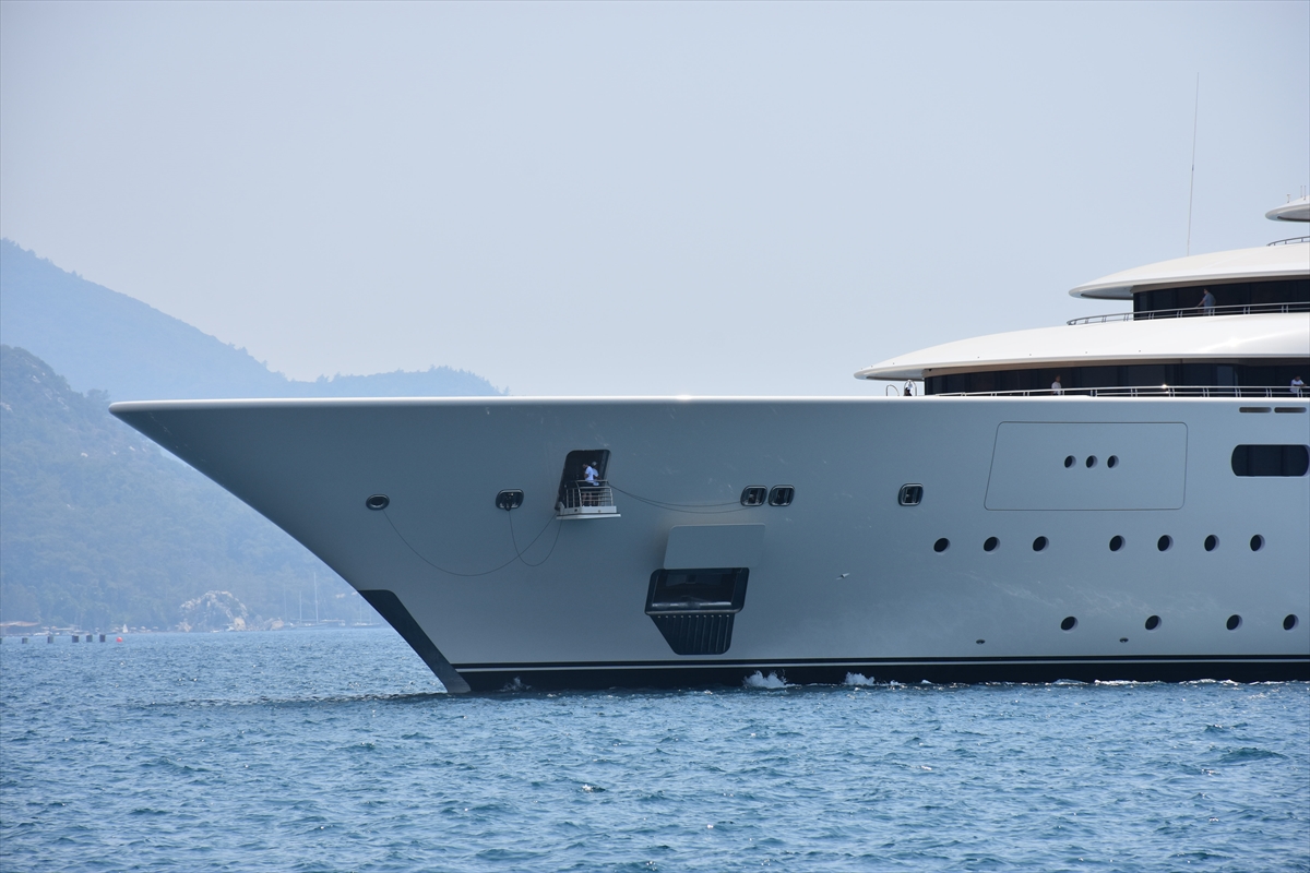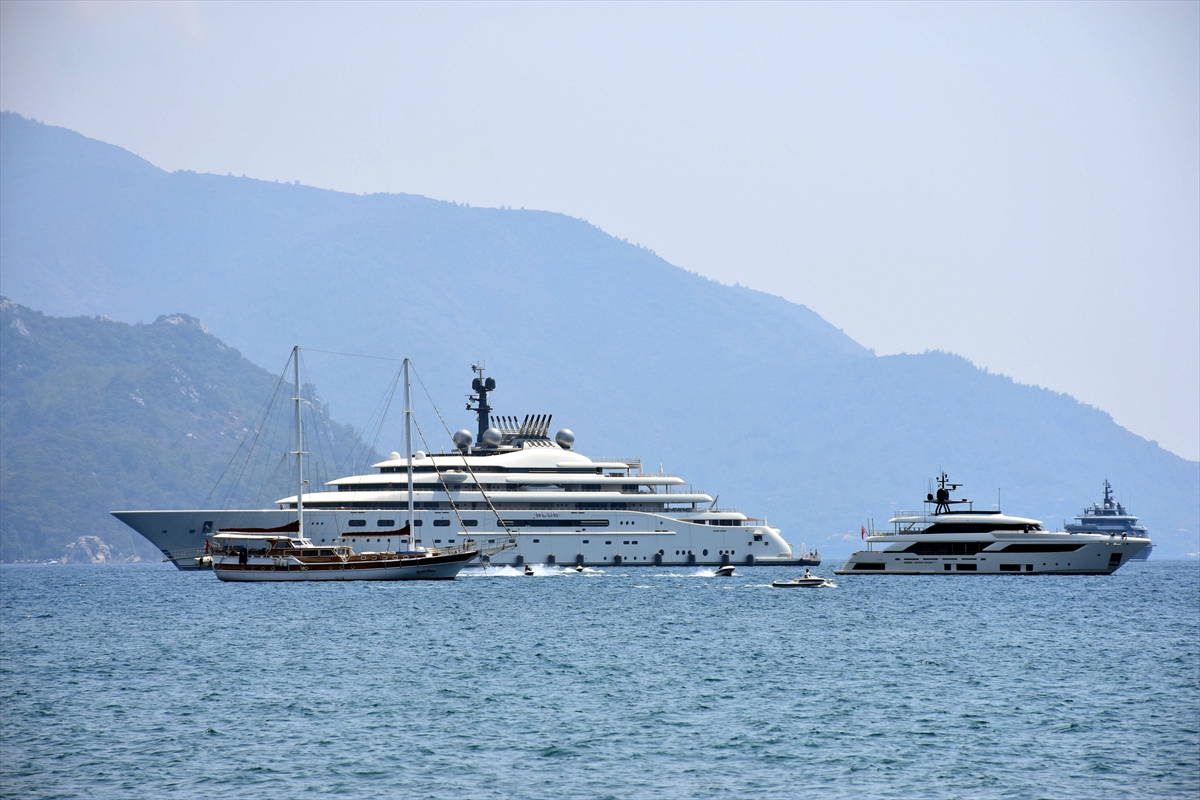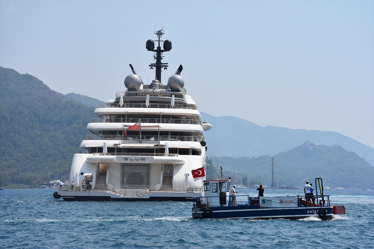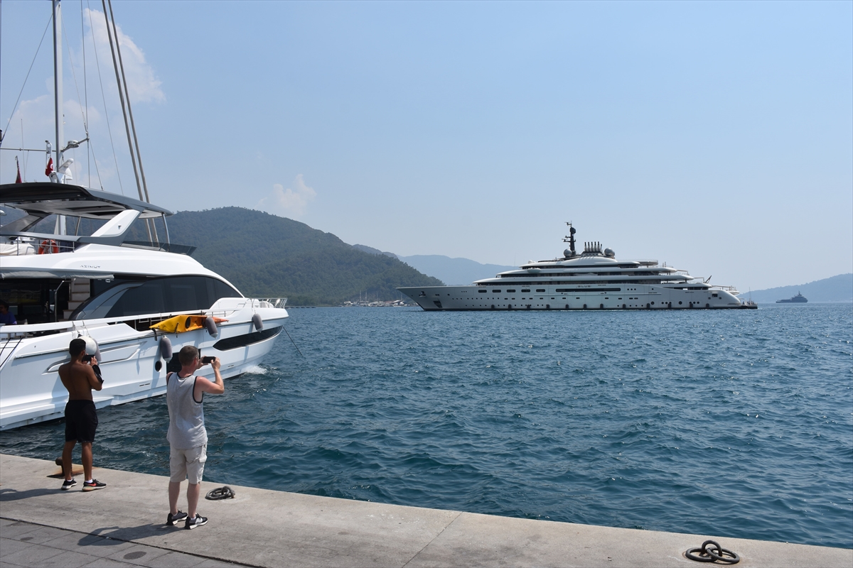 Öğlen saatlerinde Marmaris Körfezi'ne giriş yapan dev yat, ilçedeki marinalara sığmadığı için Marmaris Limanı'nın büyük rıhtımına yanaştırıldı.