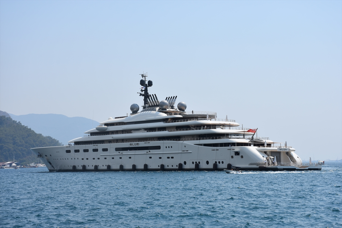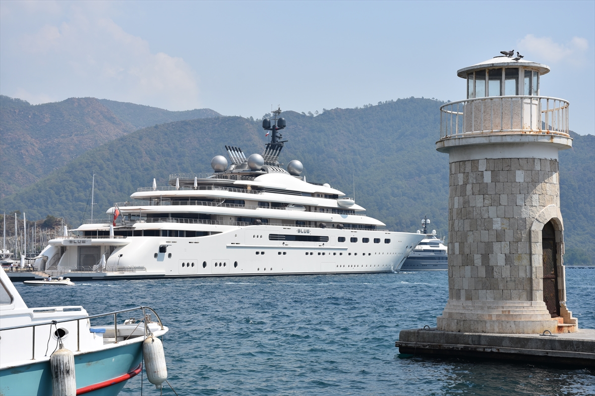MUĞLA (AA) – Cayman Adaları bayraklı dünyanın en büyük beşinci yatı olarak gösterilen 160 metre uzunluğundaki "Blue" isimli yat, Muğla'nın Marmaris ilçesine demirledi.