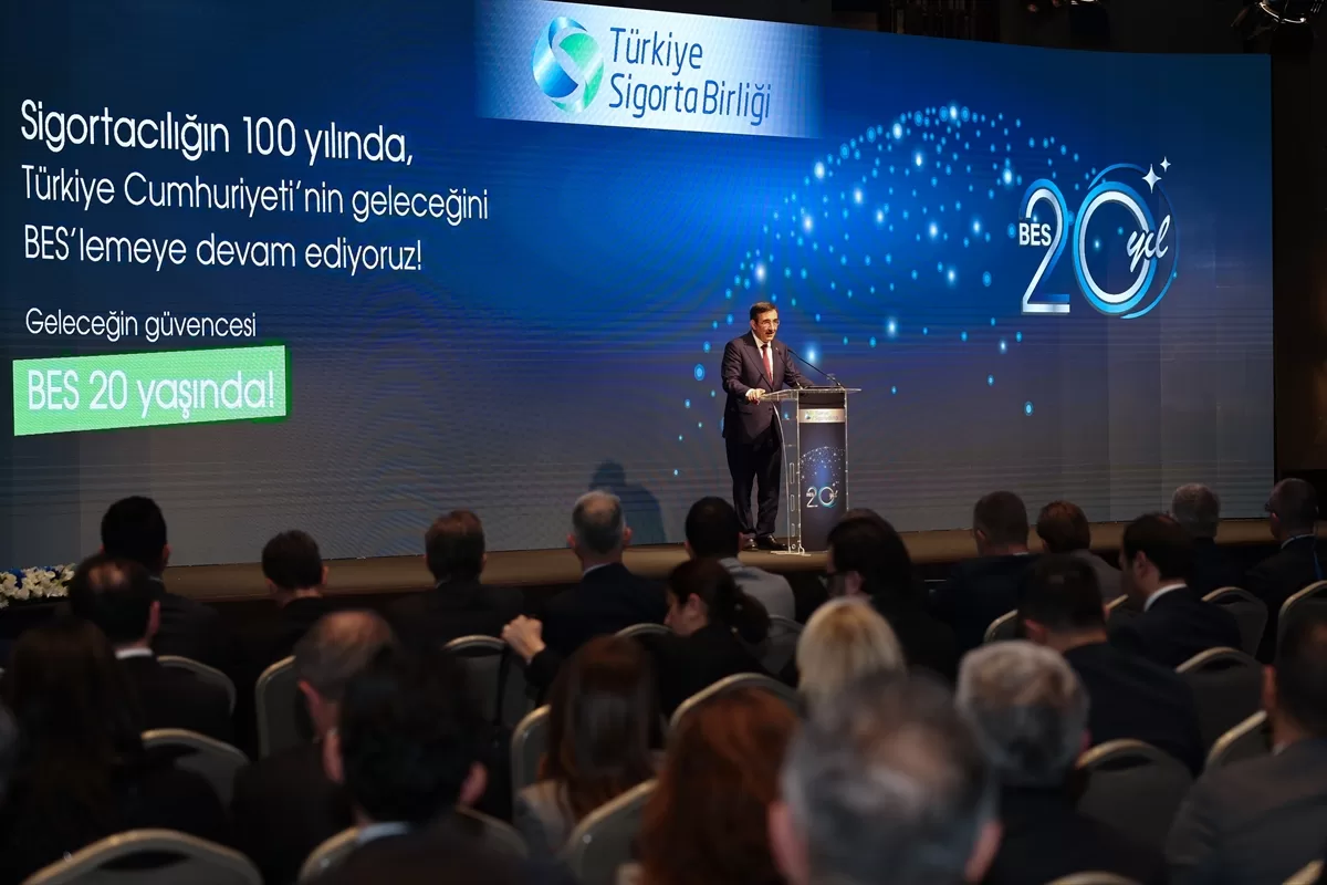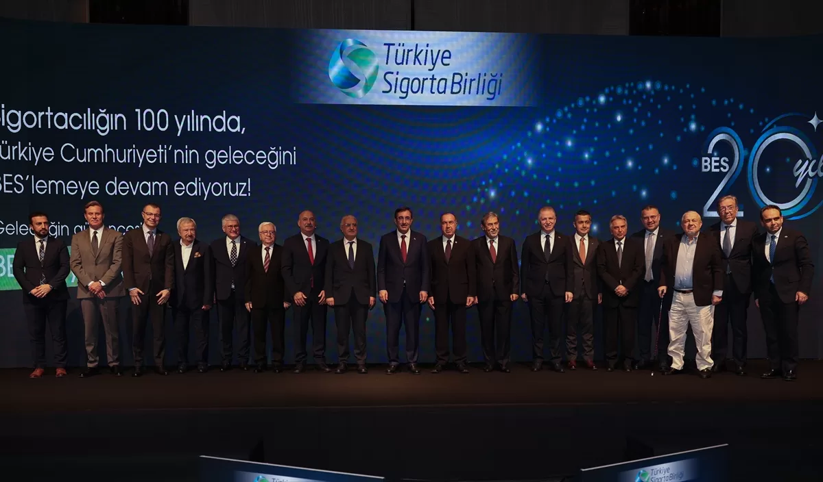 Türkiye Sigorta Birliği (TSB) tarafından düzenlenen sigortacılık sektörünün 100, BES'in 20. yılı etkinliğine Cumhurbaşkanı Yardımcısı Cevdet Yılmaz, TSB Başkanı Uğur Gülen, Sigortacılık ve Özel Emeklilik Düzenleme ve Denetleme Kurumu (SEDDK) İkinci Başkanı Mehmet Verim katıldı.