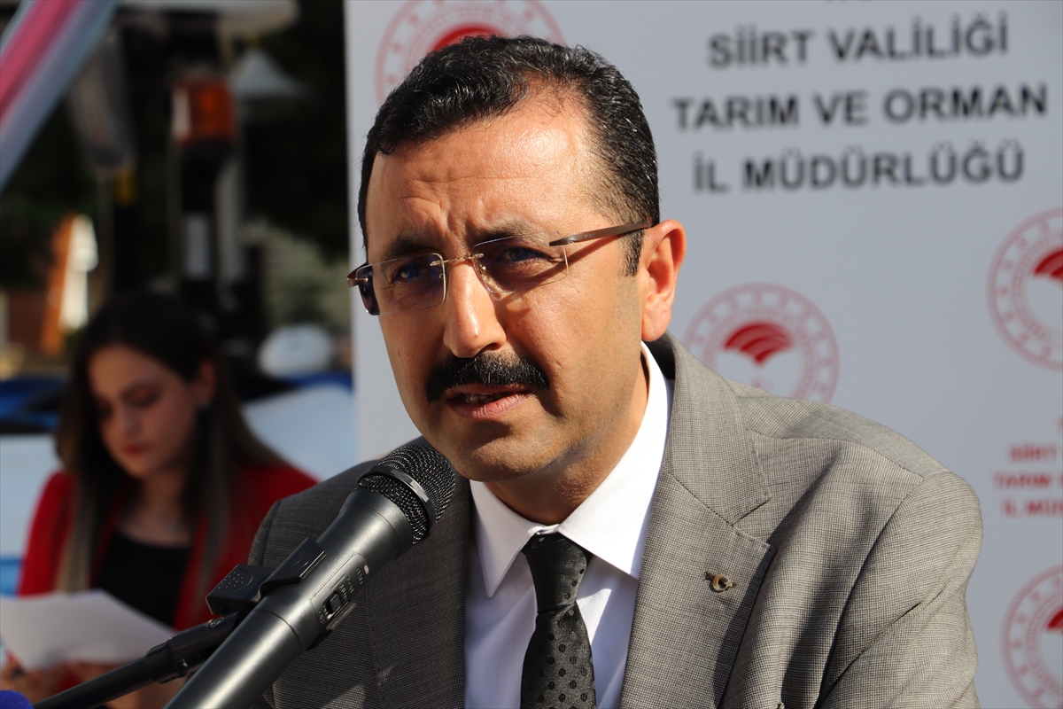 "Proje kapmasında 240 motorlu çapa makinesi (patpat), 59 ekim makinesi, 54 kültivatör, 48 rotovatör, 3 hasat (harman makineleri), 13 goble diskaro, 17 pulluk, 9 atomizör, 17 pülverizatör, 8 römork, sap toplamalı saman makinesi, 2 toprak merdanesi, traktör ön yükleyici olmak üzere toplamda 472 makine-ekipman desteklemesi yapılacak. Kırsal kalkınma yatırımlarında Türkiye'de ilk 20'deyiz. İl genelinde 120 mühendis tekniker, 50 veteriner hekim olmak üzere 170 teknik personelle, tarımsal oda ve birliklerimizle işbirliği içinde proje üretmeye ve çalışmaya devam ediyoruz. Bu yıl uygulanacak tarımsal projelerin dağıtılacak tarımsal alet ve ekipmanın Siirt ve ülkemiz tarımına hayırlı olmasını diliyorum."