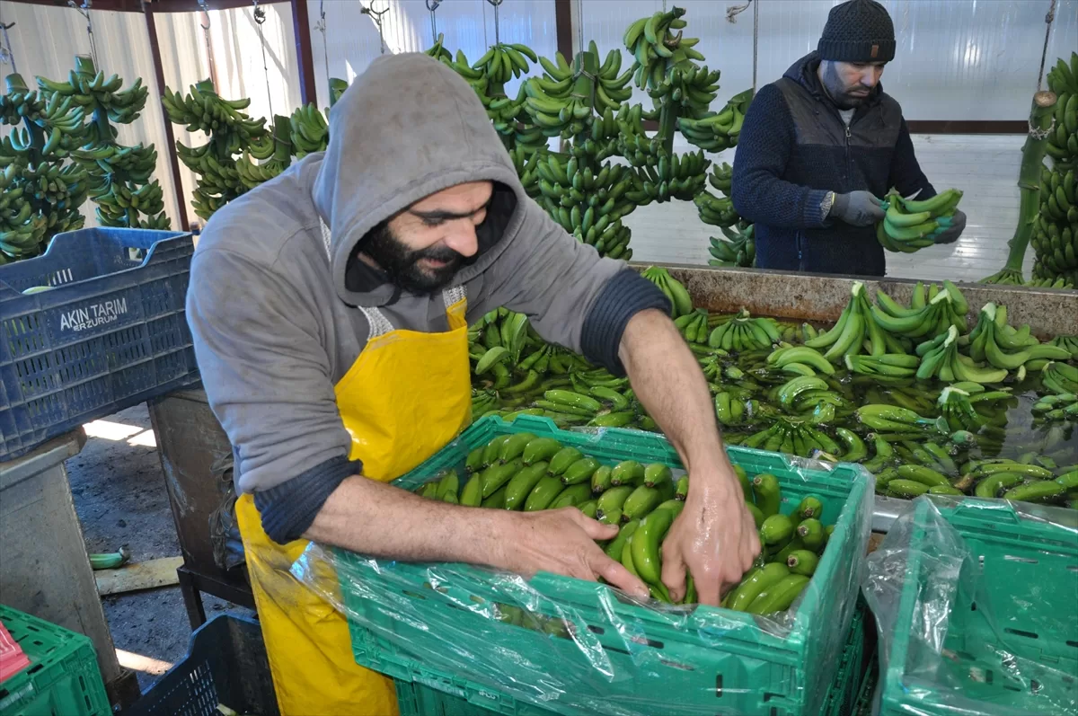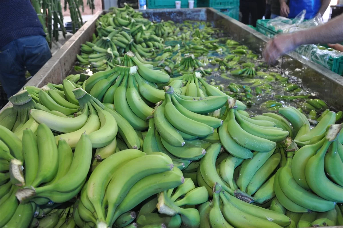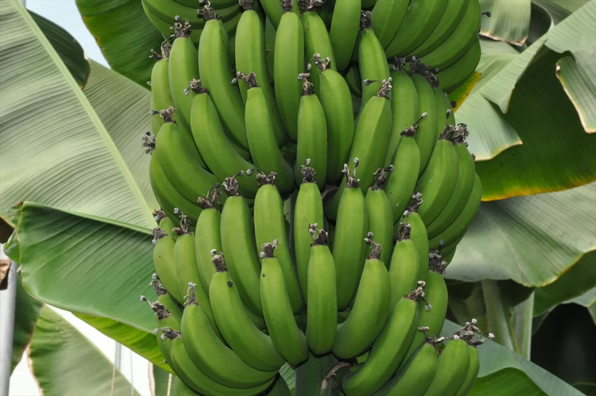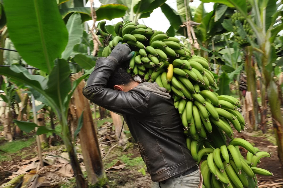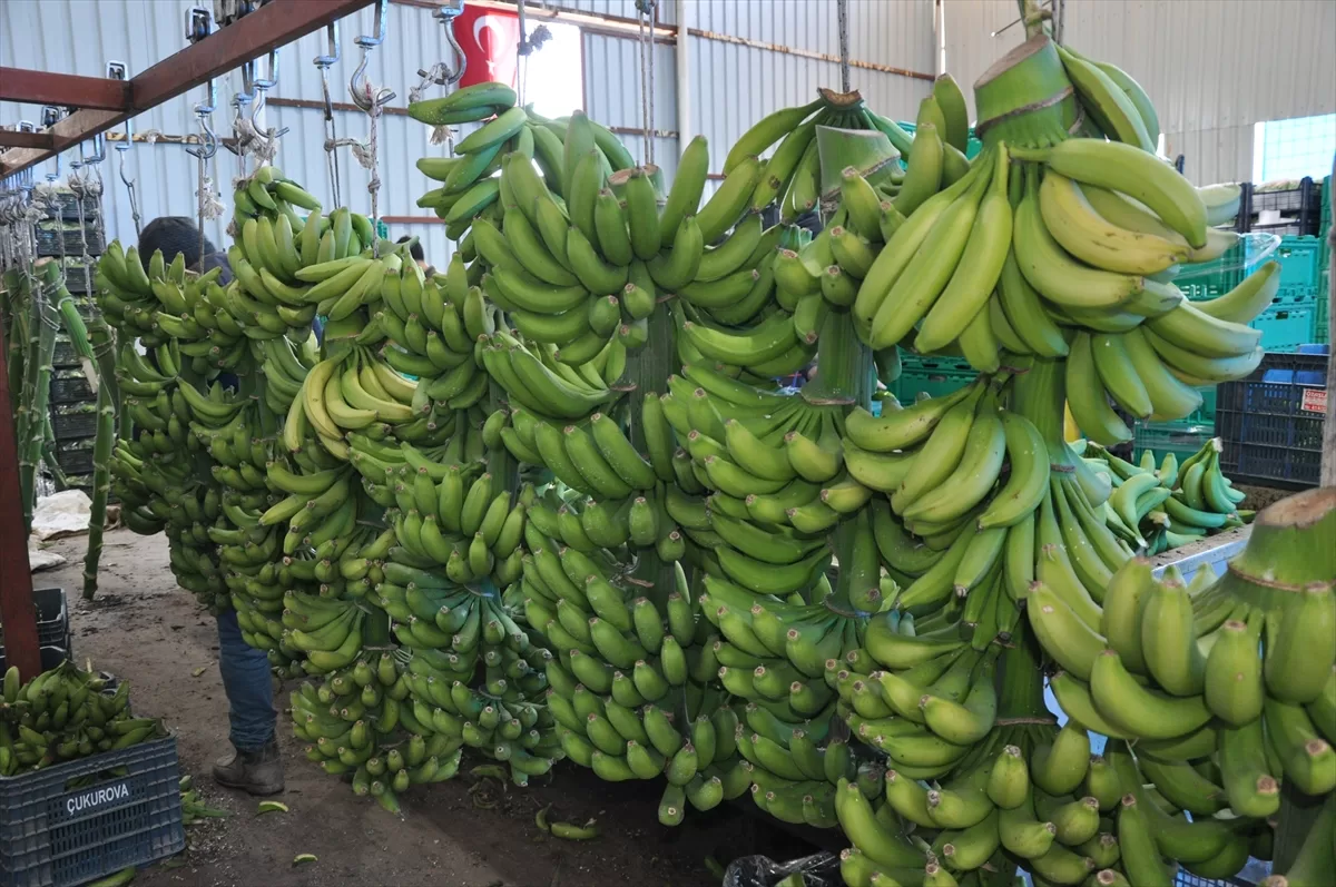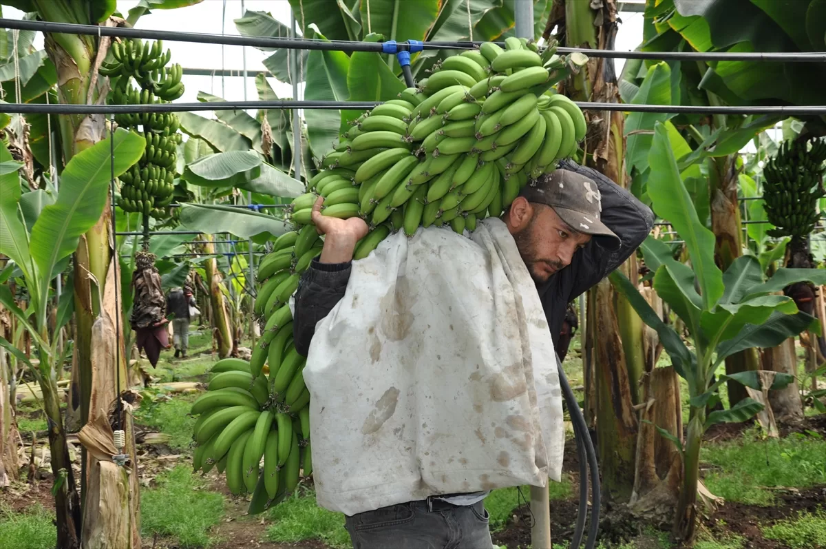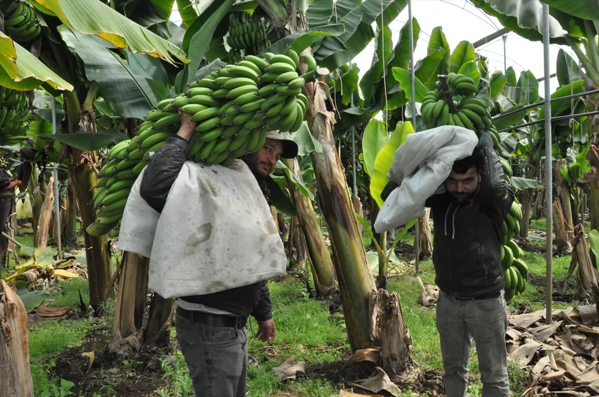 MERSİN (AA) – Türkiye'nin yaş meyve sebze üretim merkezlerinden Mersin'in Silifke ilçesinde, örtü altında 5 bin dönüm alanda yetiştirilen muzda hasat devam ediyor.