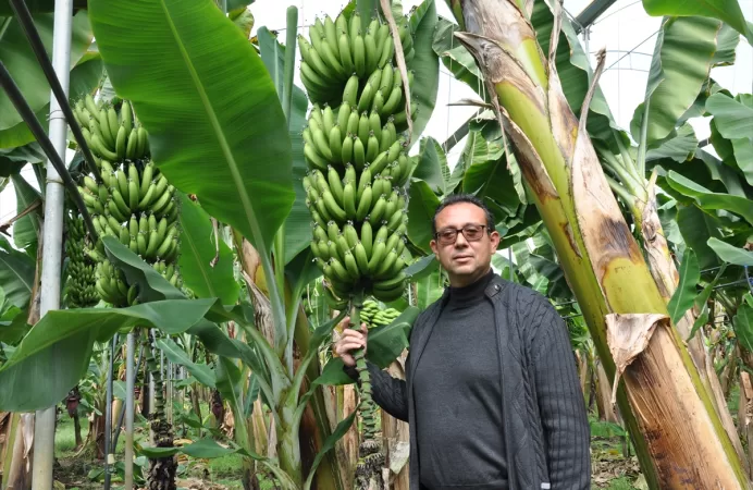 Silifke Ziraat Odası Meclis Başkanı Gökhan Özdamar, 15 dönümlük serada muz üretimi yaptığını belirtti.
