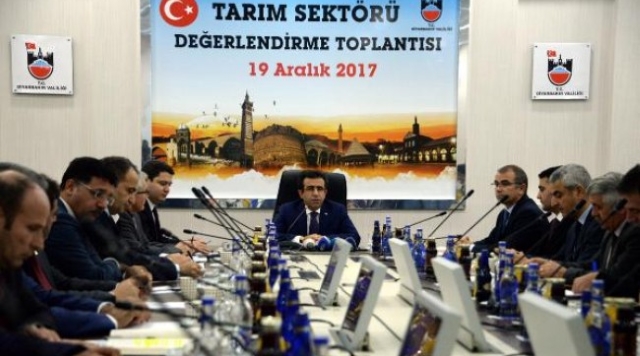 ‘DİYARBAKIR’IN TARIMSAL GELİRİ 5,1 MİLYAR LİRA’ Toplantının açılışında konuşan Vali Güzeloğlu, Diyarbakır’ın toplam yüzölçümü içerisinde, 6 milyon 959 bin dekarlık çok önemli bir tarımsal üretim alanı olduğunu, kentin tarımsal gelirinin 5,1 milyar lirayı bulduğunu belirterek, “Bu, toplam üretim gelirinin 2,6 milyarı hayvansal üretimden, 2,5 milyarı da bitkisel üretimde elde edilmektedir. Çiftçi kayıt sistemine 34 bin 224 çiftçimiz kayıtlı olarak üretim yapmaktadır. Çiftçi kayıt sistemindeki arazi varlığımız, 4 milyon 238 bin dekara ulaşmaktadır” dedi.