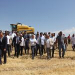 Konuşmaların ardından Vali Şimşek önce tırpanla, daha sonra biçerdöverle Habeş buğdayının hasadına katıldı.