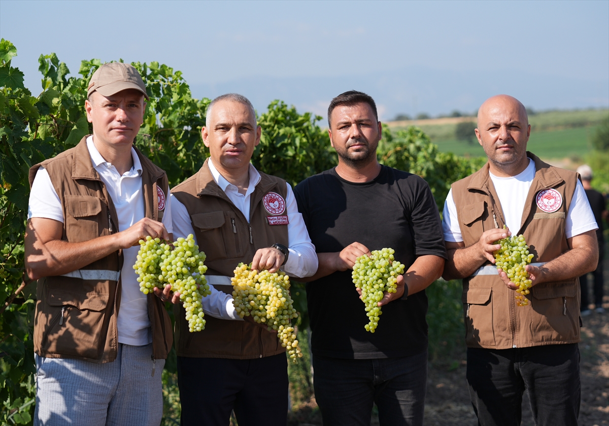 Burada İl Tarım ve Orman Müdürü Metin Öztürk ve bağ sahibi Yasin, asmadaki üzüme ilk bıçağı atarak hasadı başlattı.
