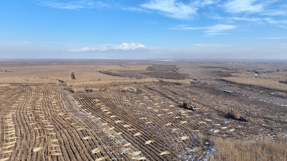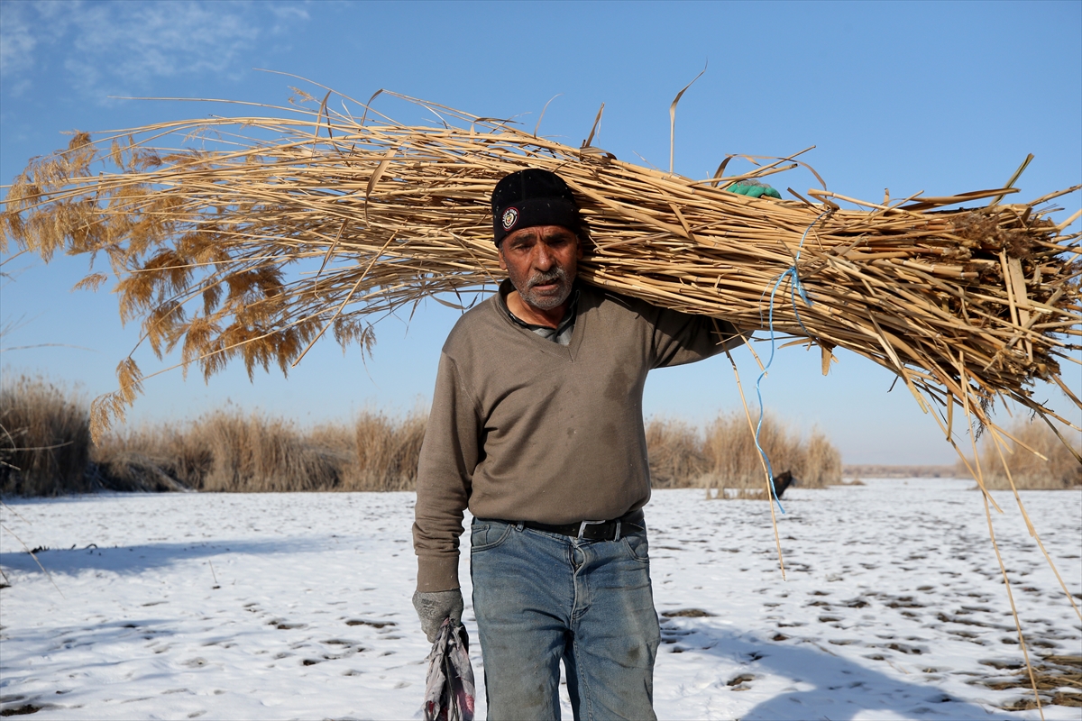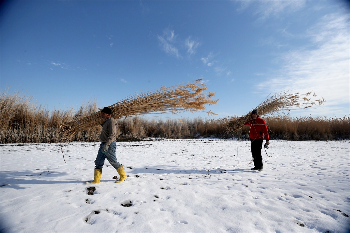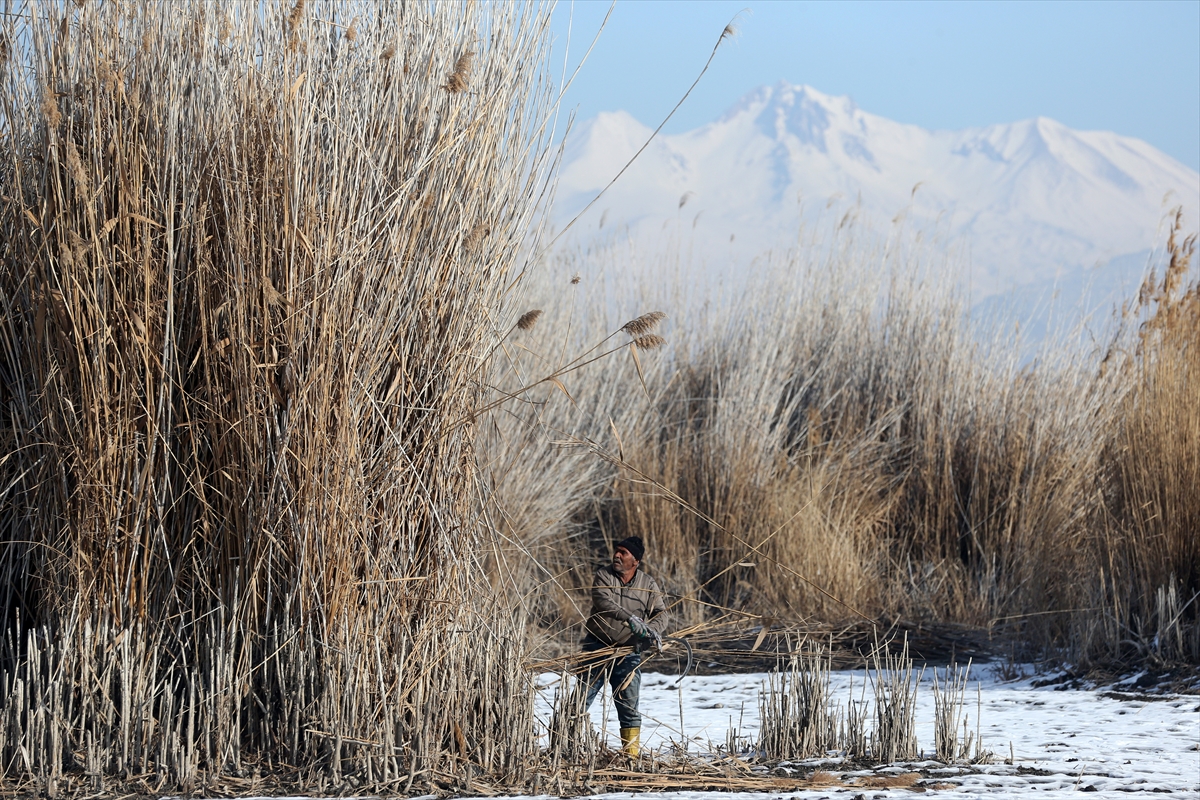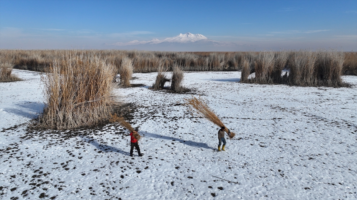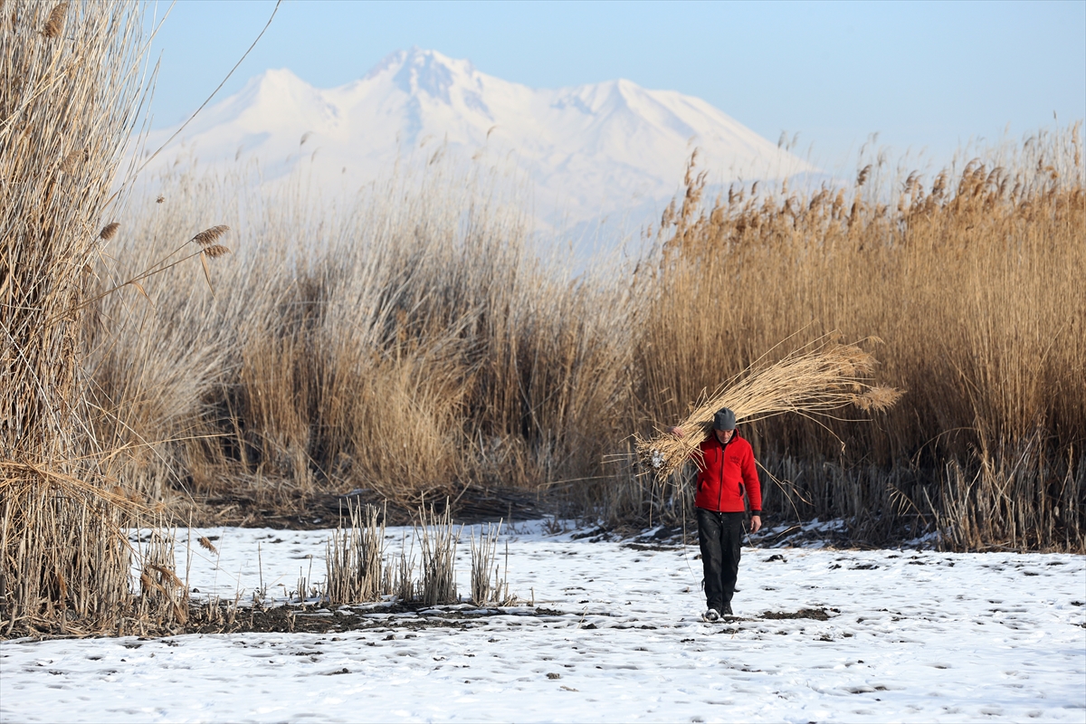 Göçmen kuşların uğrak merkezlerinden biri olan Erciyes Dağı eteklerindeki Sultan Sazlığı'nda yetişen kamışların hasadı, kış mevsiminde bölge halkı tarafından yapılıyor.