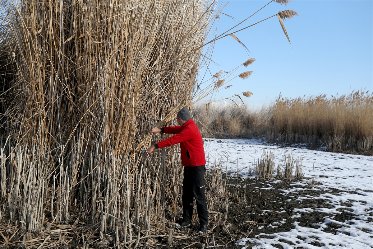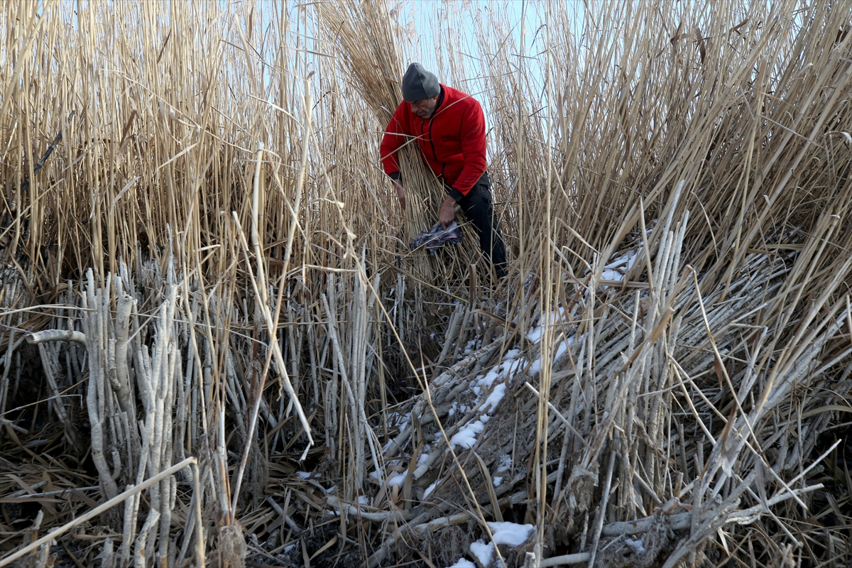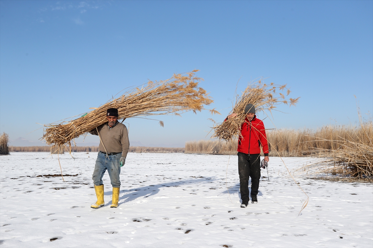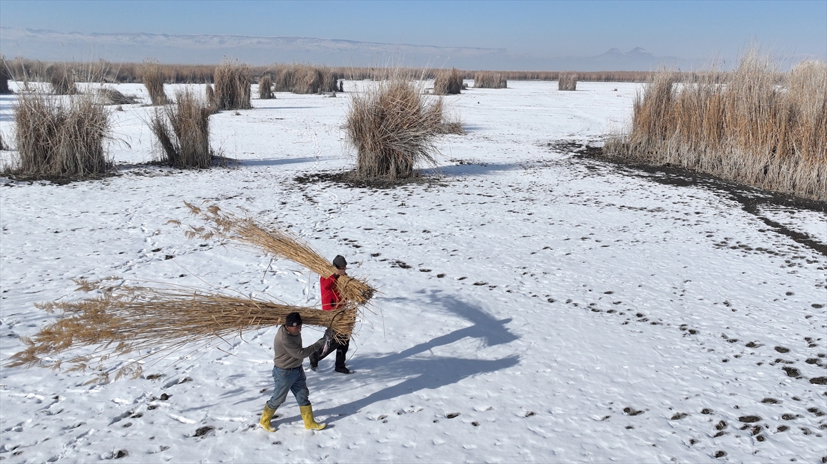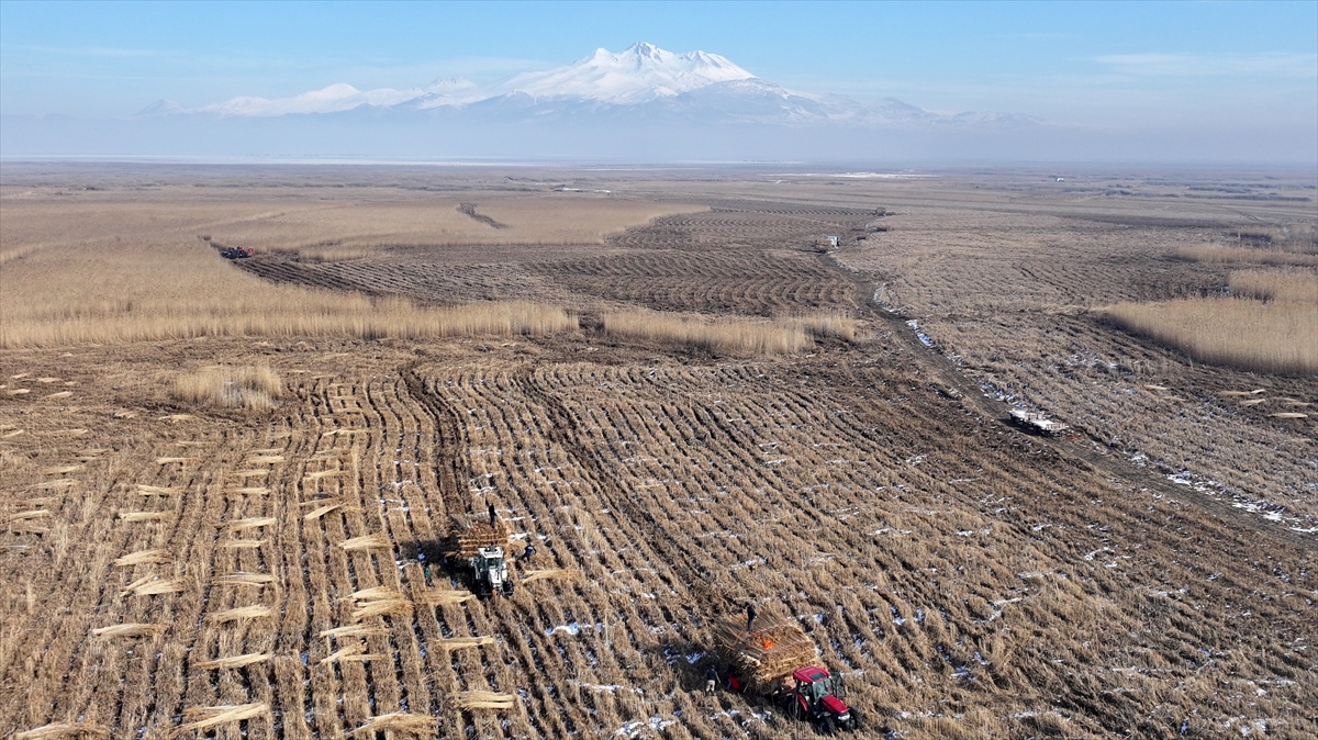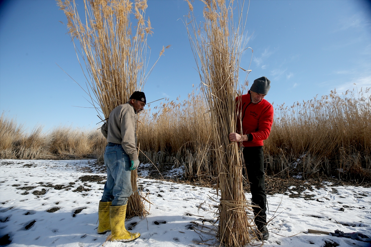 Göçmen kuşların uğrak merkezlerinden biri olan Erciyes Dağı eteklerindeki Sultan Sazlığı'nda yetişen kamışların hasadı, kış mevsiminde bölge halkı tarafından yapılıyor.
