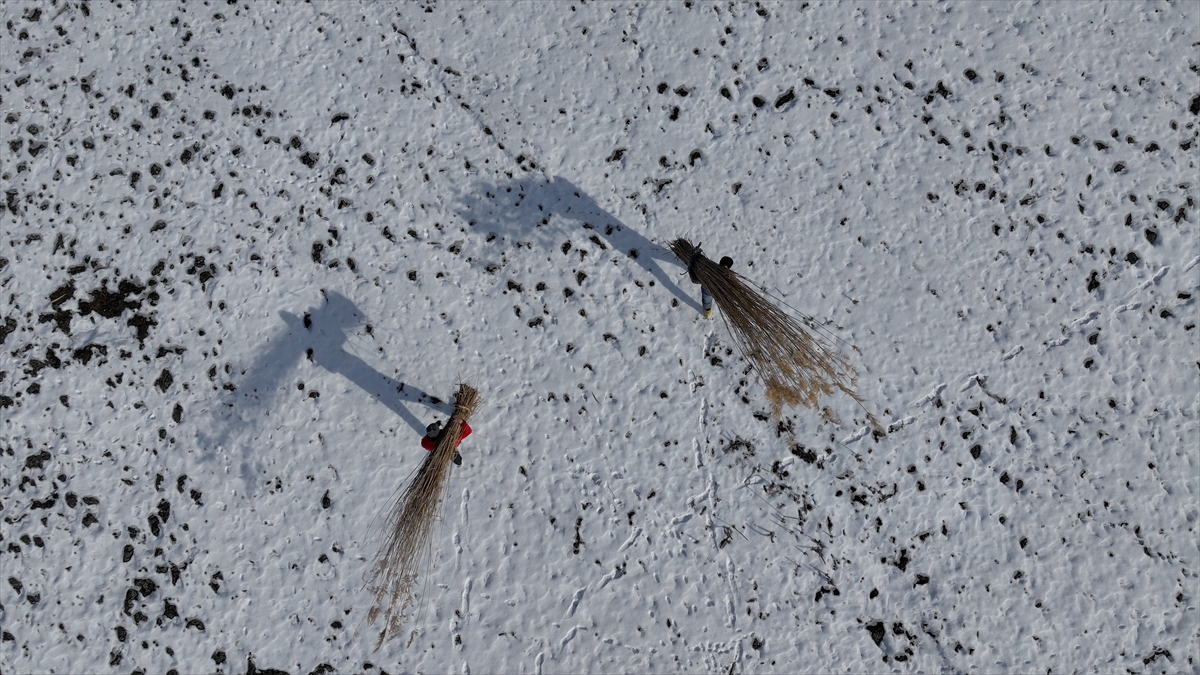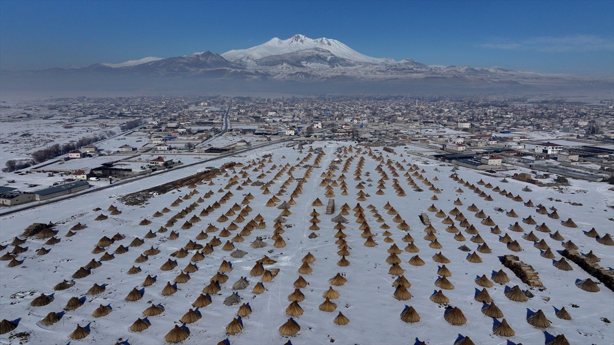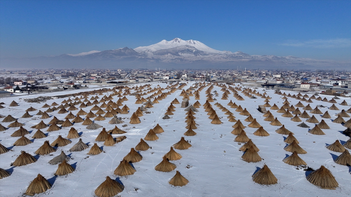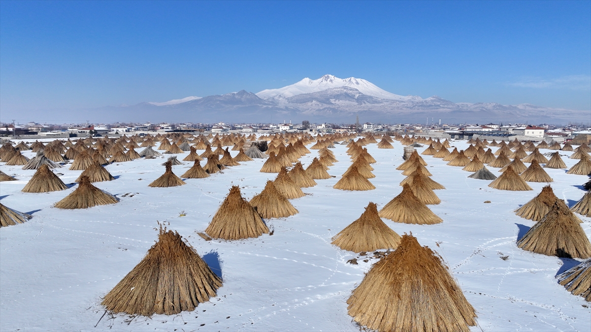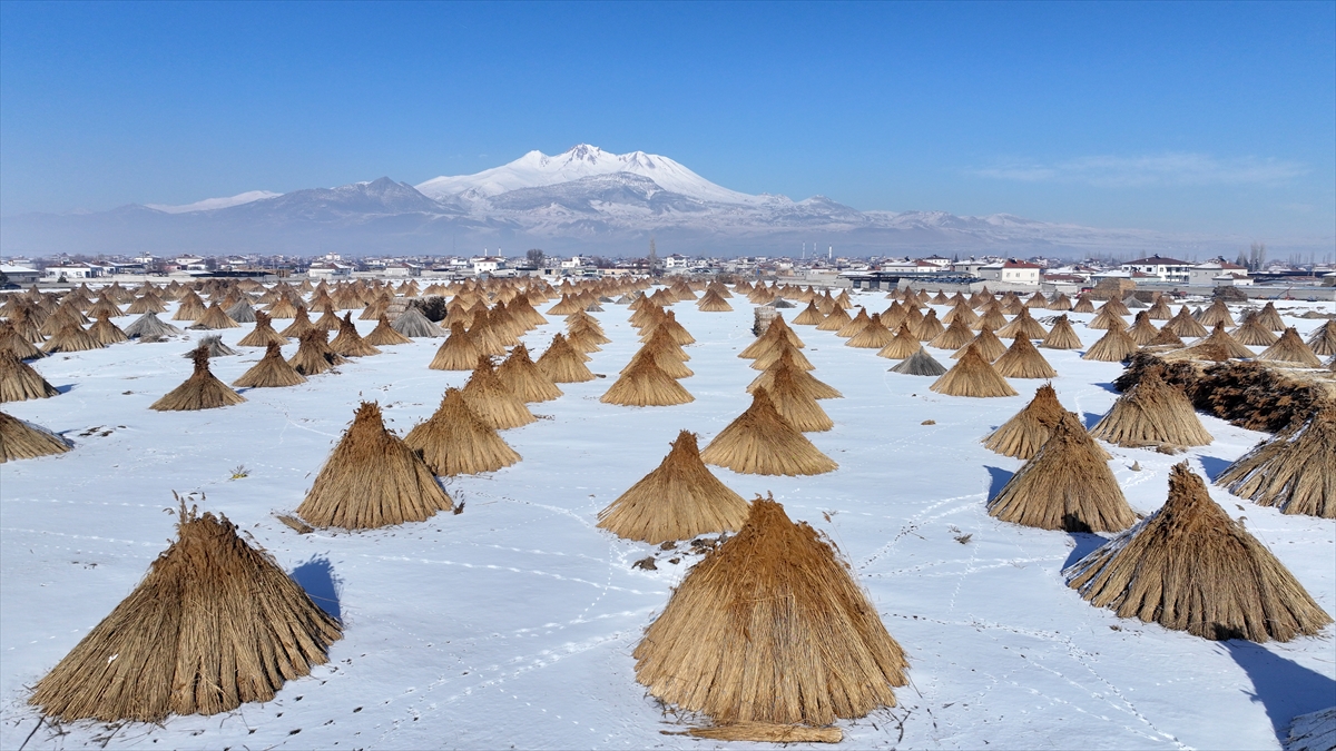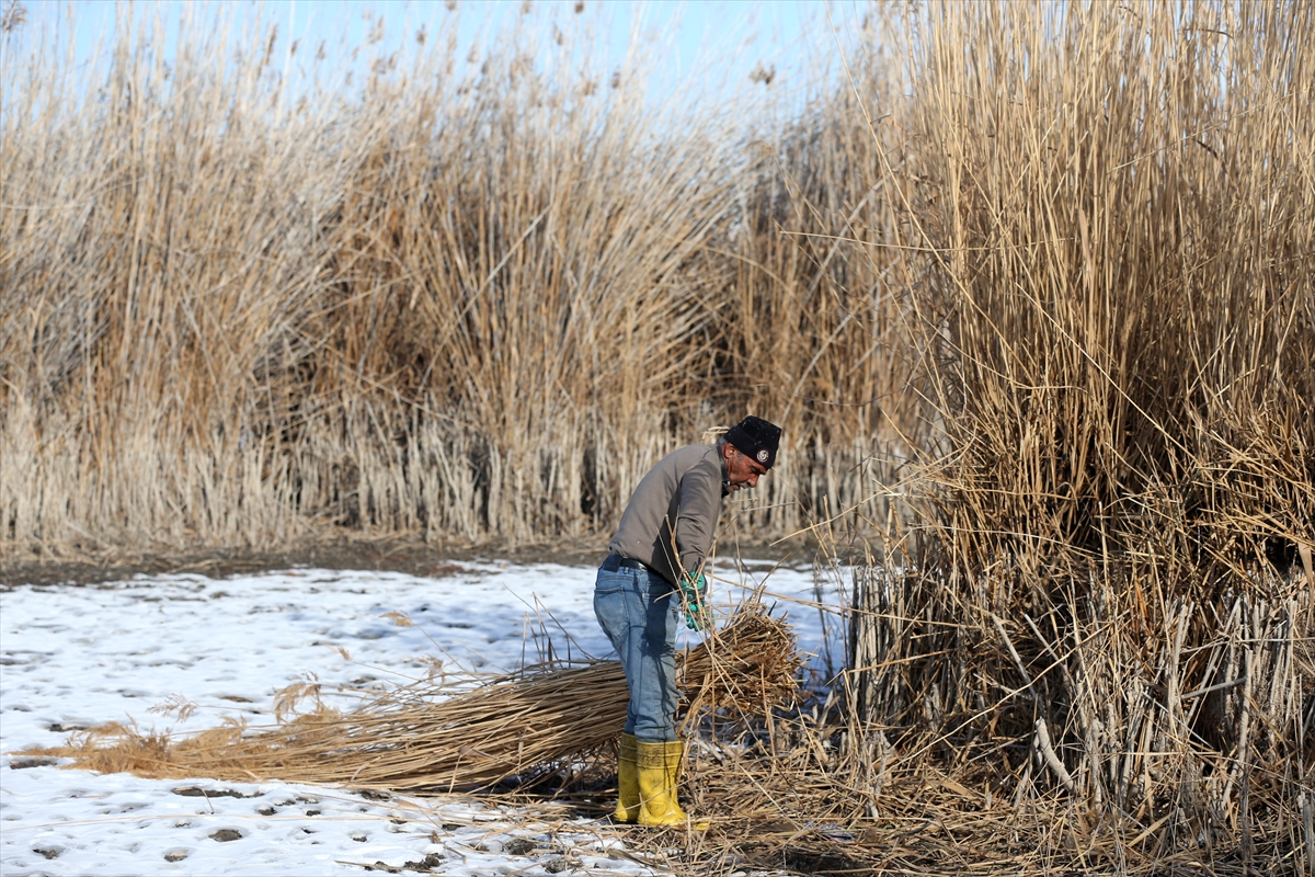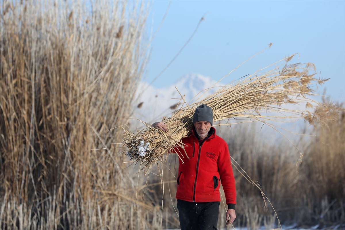 Göçmen kuşların uğrak merkezlerinden biri olan Erciyes Dağı eteklerindeki Sultan Sazlığı'nda yetişen kamışların hasadı, kış mevsiminde bölge halkı tarafından yapılıyor.