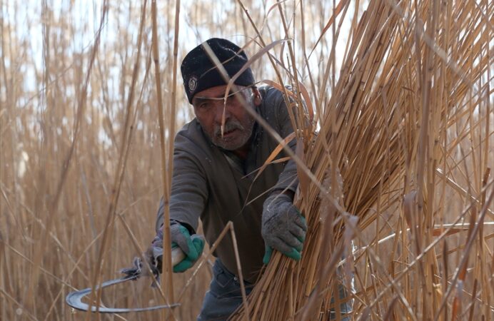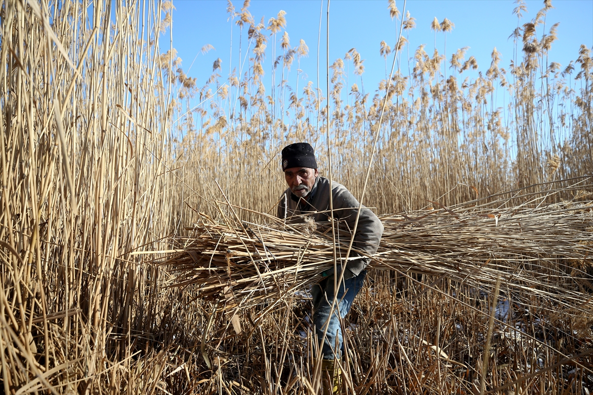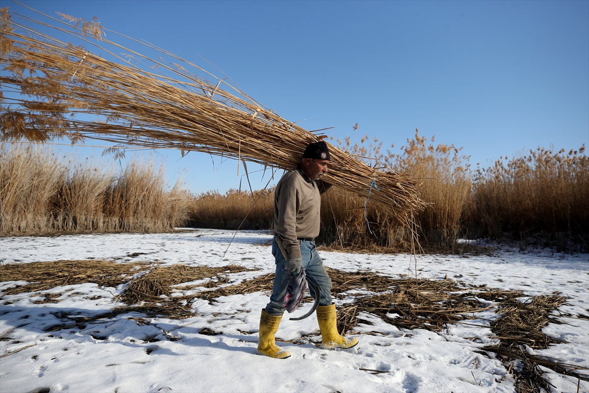 KAYSERİ (AA) – MÜZAHİM ZAHİD TÜZÜN – Türkiye'nin önemli sulak alanlarından Sultan Sazlığı Milli Parkı'nda yetişen kamışlar, soğuk havaya rağmen bölgede yaşayanlar tarafından hasat ediliyor.