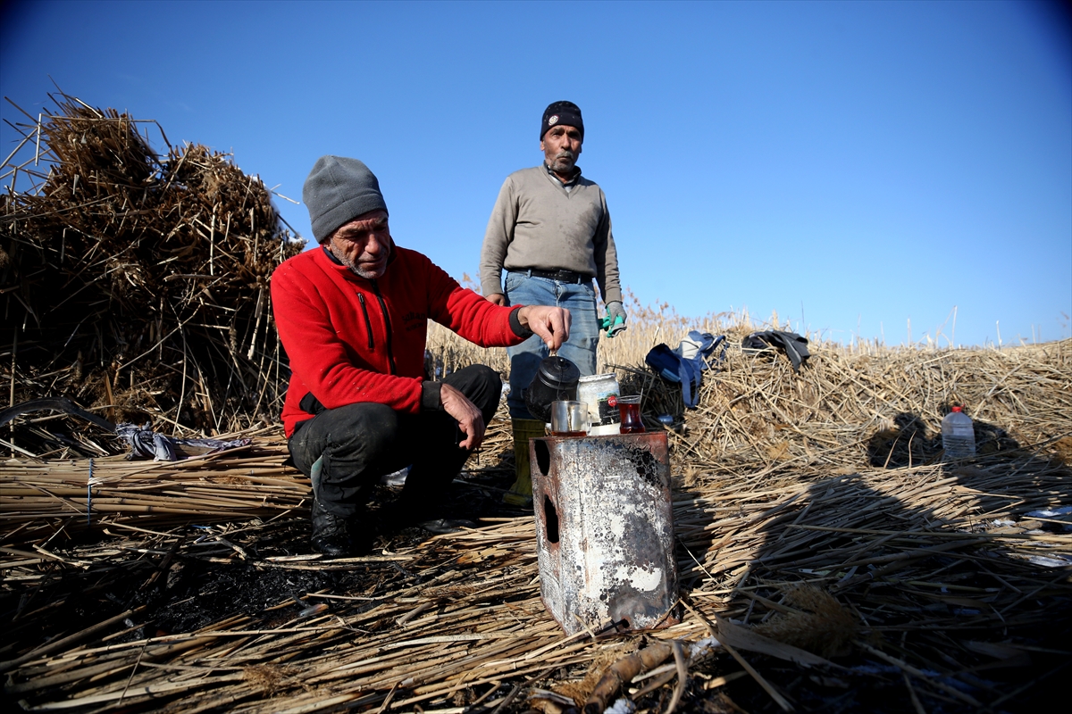 Sazlıkta çalışan Ovaçiftlik Mahallesi sakinlerinden 59 yaşındaki Mesut Atasoy, AA muhabirine, kışın zor şartlarda kamış hasadı yaptıklarını söyledi.