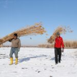Dondurucu soğuğa rağmen sabahın erken saatlerinden itibaren işe koyulan vatandaşlar, 4 metre uzunluğundaki kamışları hasat ediyor.