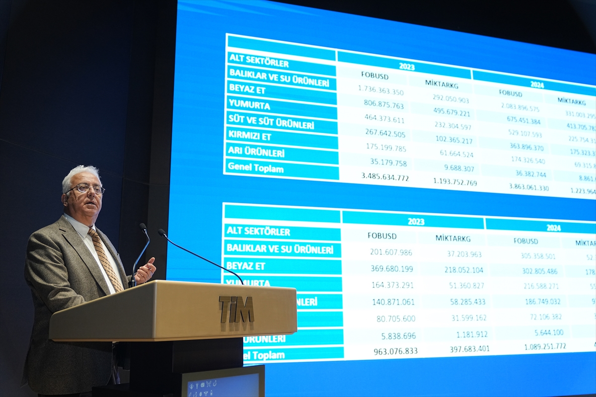 Törende konuşan İSHİB Yönetim Kurulu Başkanı Müjdat Sezer, su ürünleri ve hayvansal mamuller sektörünün 2024'te bir önceki yıla göre ihracatını yüzde 11 artırarak 3 milyar 863 milyon dolara yükselttiğini bildirdi.