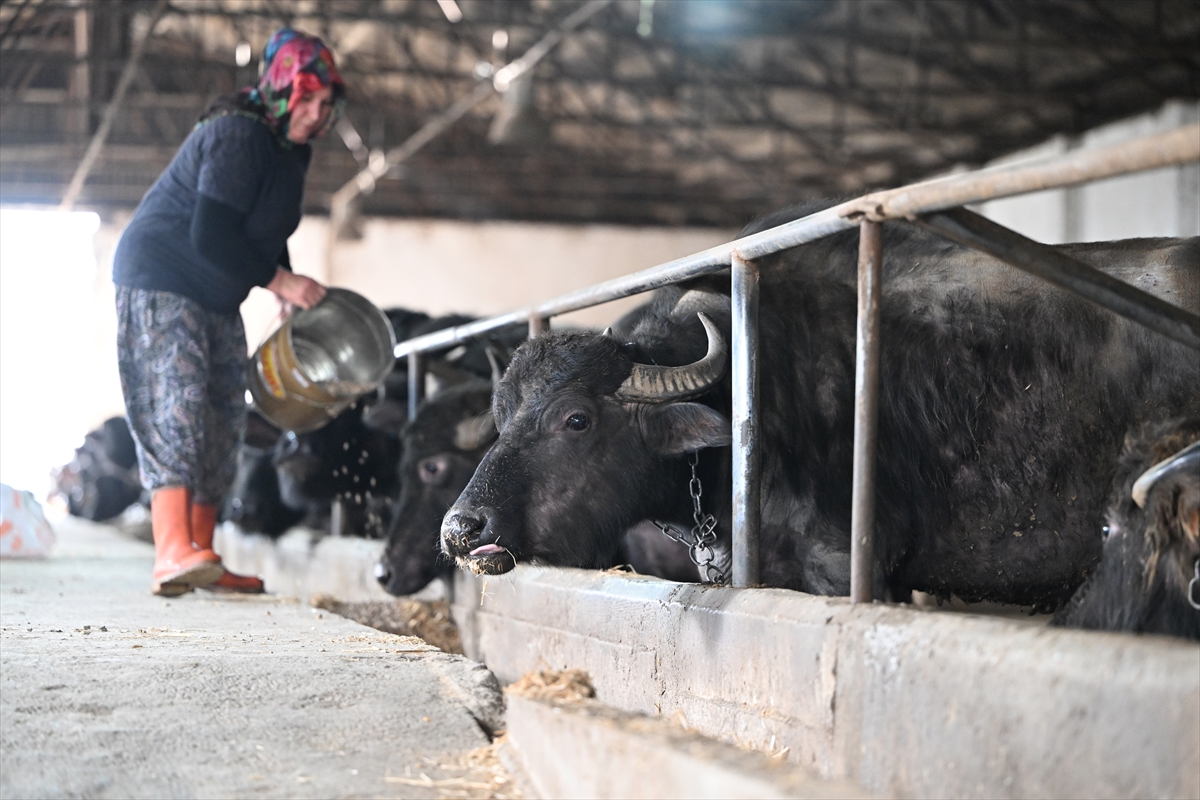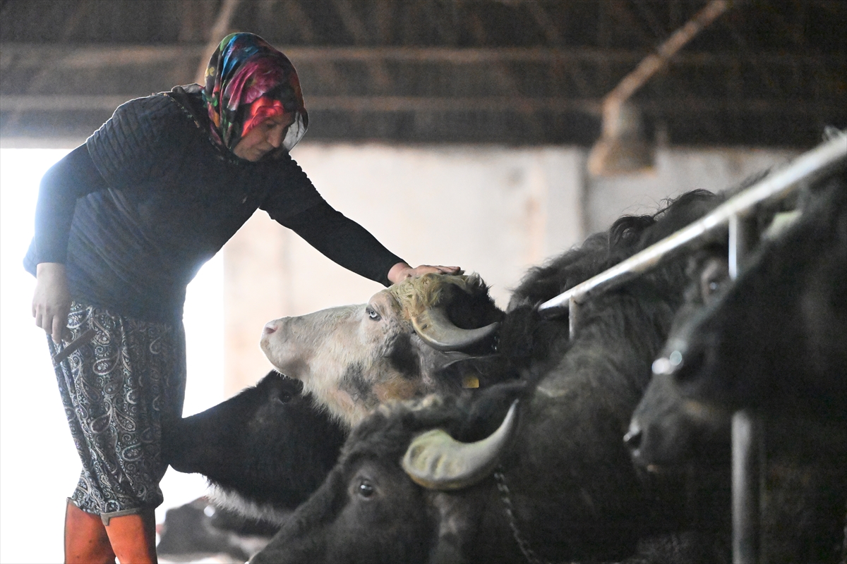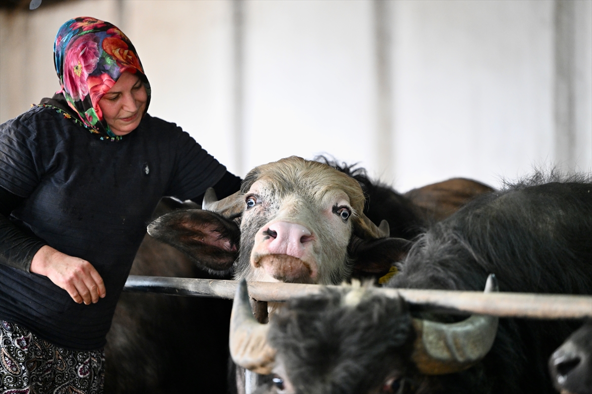 Eşi ve 3 çocuğuyla merkeze bağlı Yeni Taşköprü köyünde yaşayan 46 yaşındaki Mutlu, 2018'de ailesinin süt ve peynir ihtiyacını karşılamak için evlerinin yanında kurdukları küçük ahırda manda yetiştirmeye başladı.