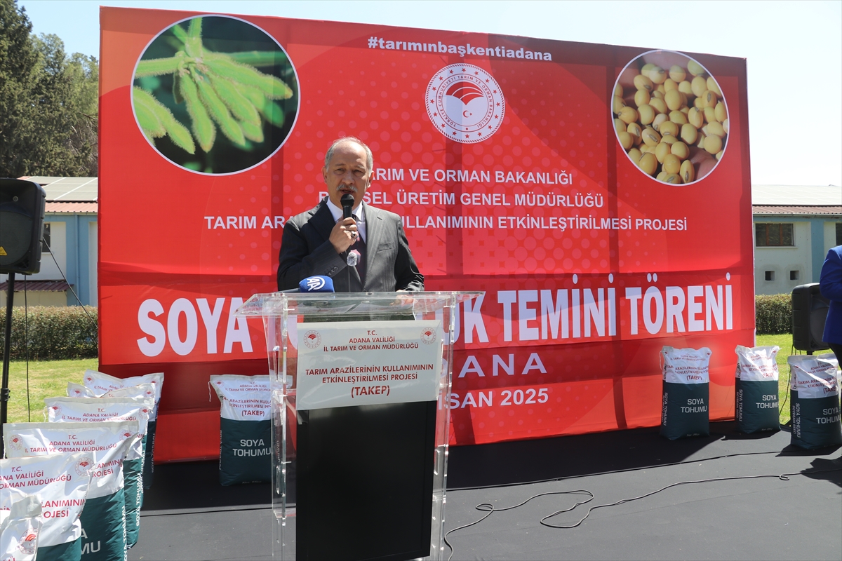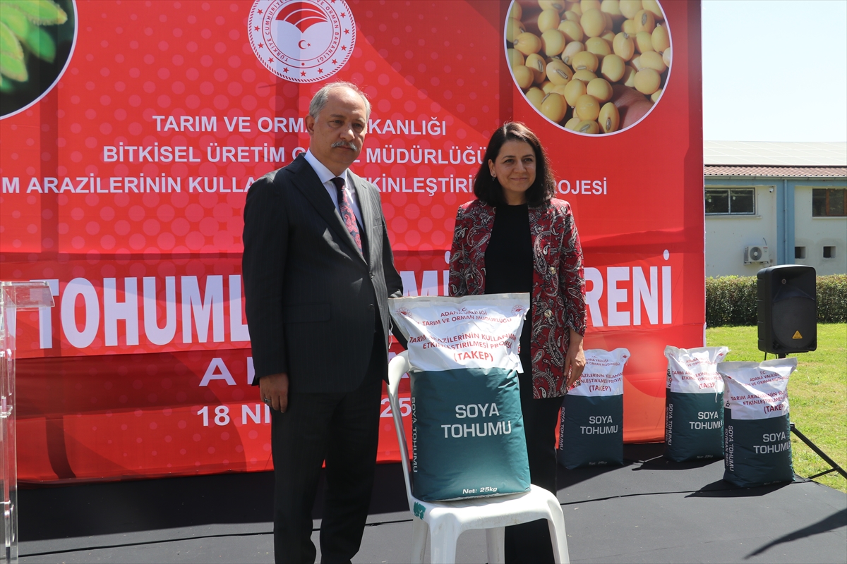 Polat, Tarım ve Orman Bakanlığı 2025 Yılı Tarım Arazilerinin Kullanımının Etkinleştirilmesi Projesi (TAKEP) kapsamında Seyhan ilçesinde mahallelerde 150 çiftçiye 126 ton soya tohumu verilmesi dolayısıyla İl Tarım ve Orman Müdürlüğü'nde temsili tohum dağıtımı törenine katıldı.