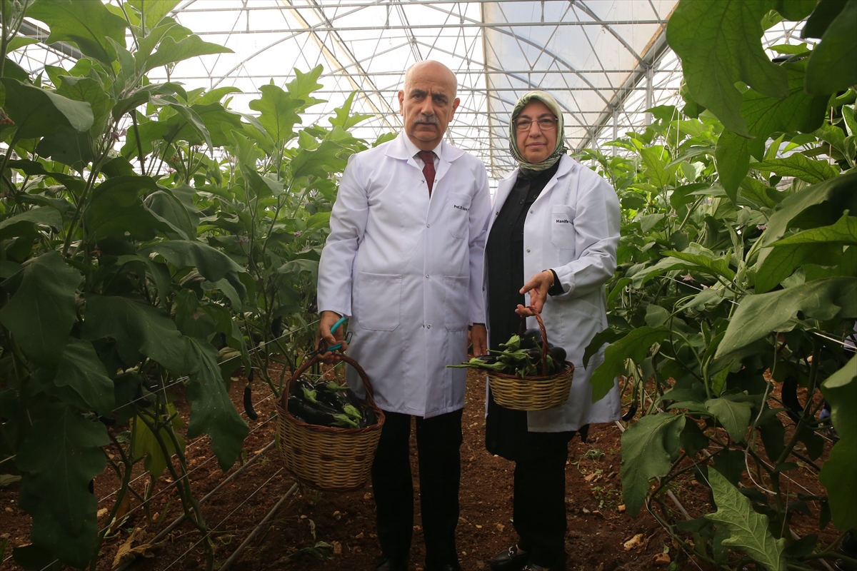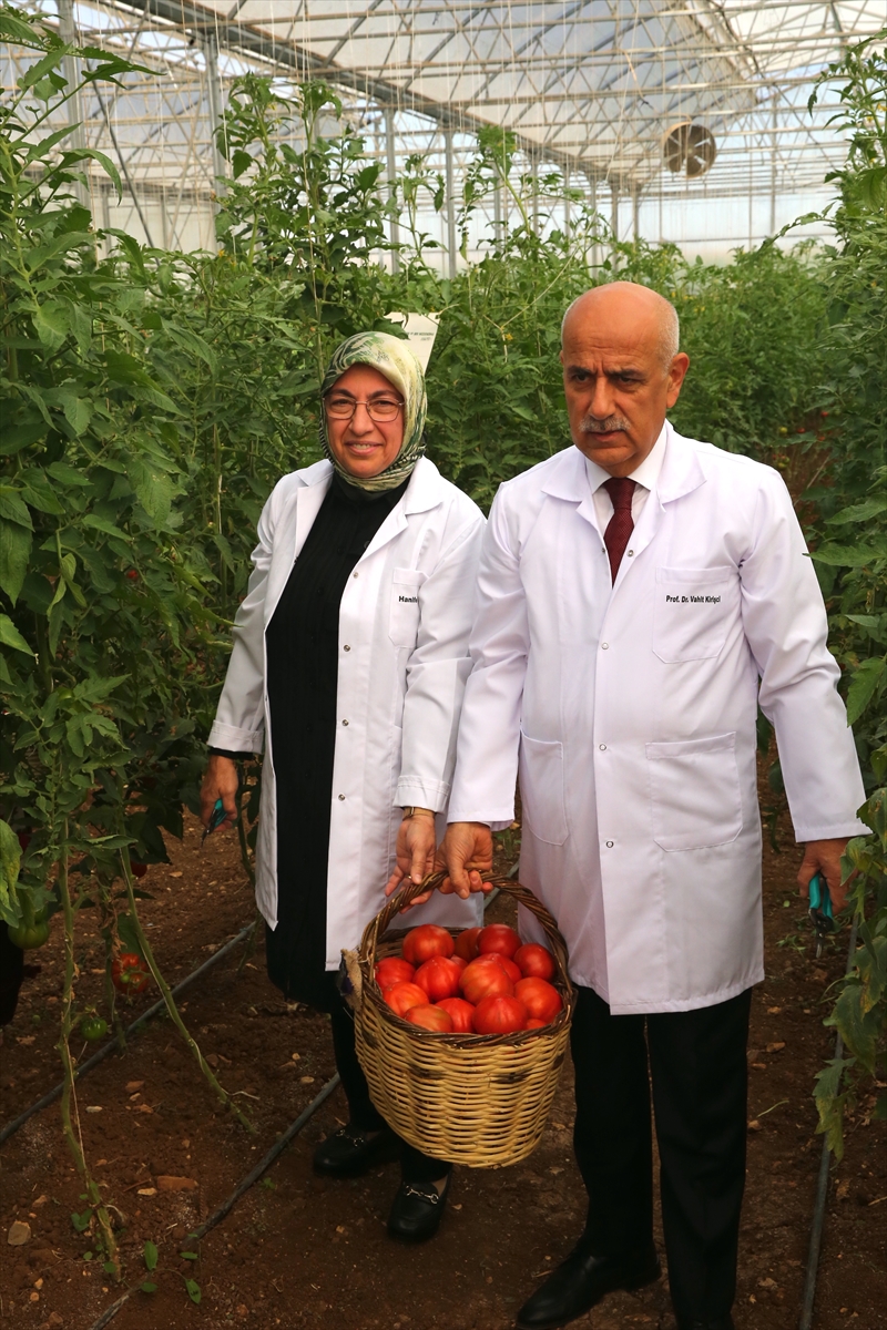 Kirişci, okulun sera alanında inceleme yaptıktan sonra eşi Hanife Kirişci'yle beraber domates ve patlıcan hasadı yaptı.