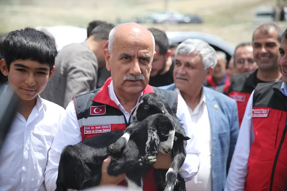 KAHRAMANMARAŞ (AA) – Tarım ve Orman Bakanı Vahit Kirişci, "Adana, Adıyaman, Diyarbakır, Gaziantep, Hatay, Kahramanmaraş, Kilis, Malatya, Osmaniye ve Şanlıurfa illerinde ve Sivas'ın Gürün ilçesinde deprem nedeniyle telef olan 43 bin 618 küçükbaş hayvanın ayni dağıtımı için gerekli olan 341 milyon lira bütçe İl Tarım Müdürlüklerimizin hesaplarına 26 Mayıs Cuma günü yani dün itibarıyla aktarılmaya başlandı." dedi.
