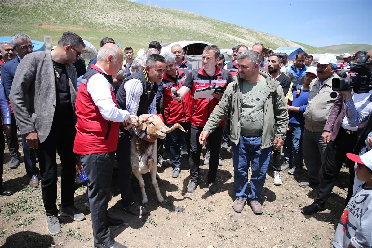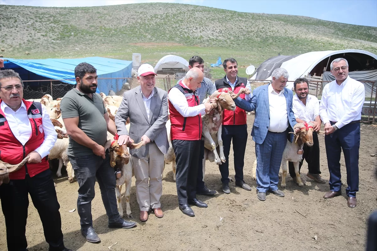 Kirişci, Dulkadiroğlu İlçesindeki Yedikuyular Kayak Merkezi'nin yanında bulunan hayvan otlatma merasında depremlerde hayvanlarını kaybeden çiftçilere hayvan dağıtım törenine katıldı.