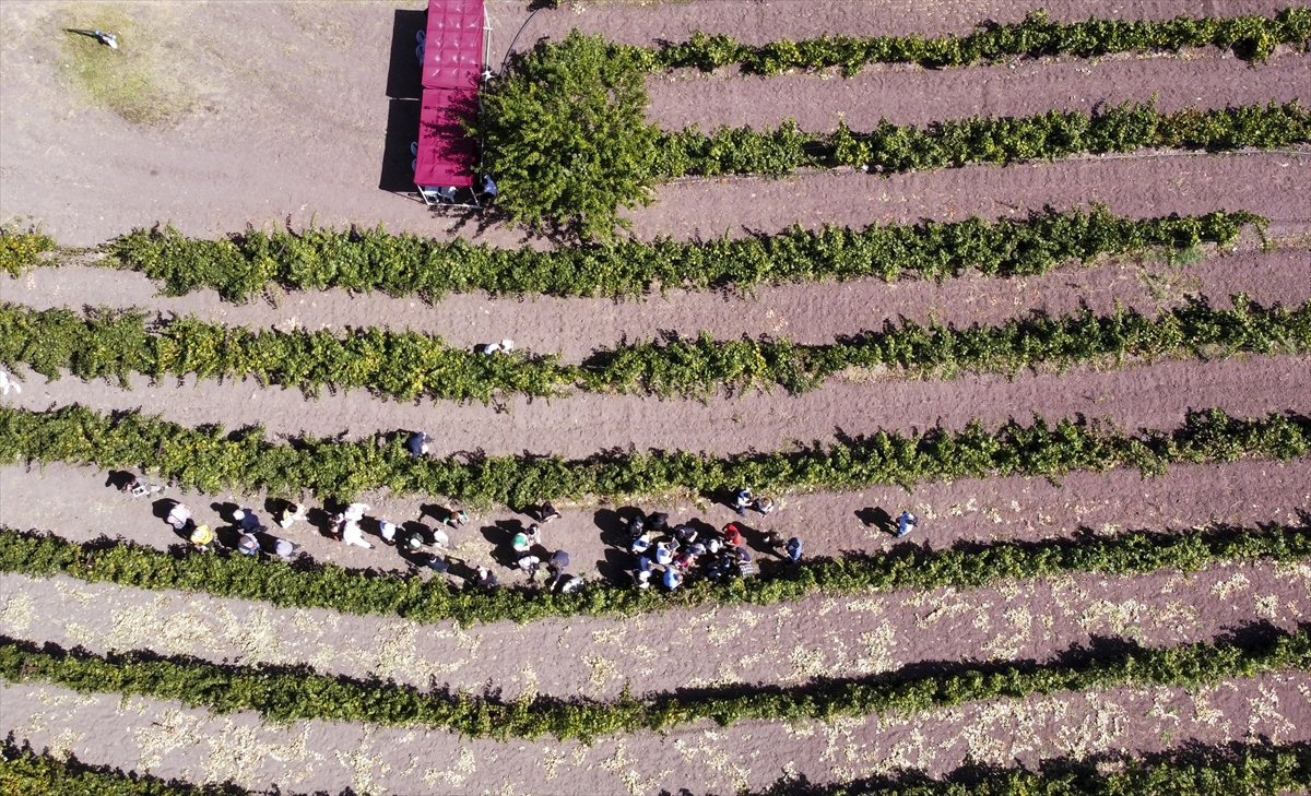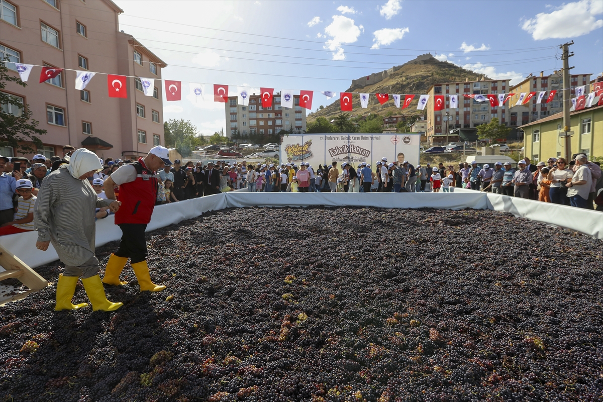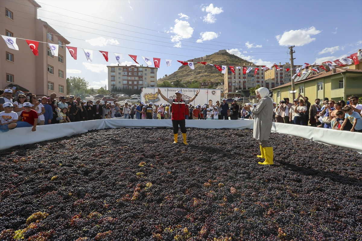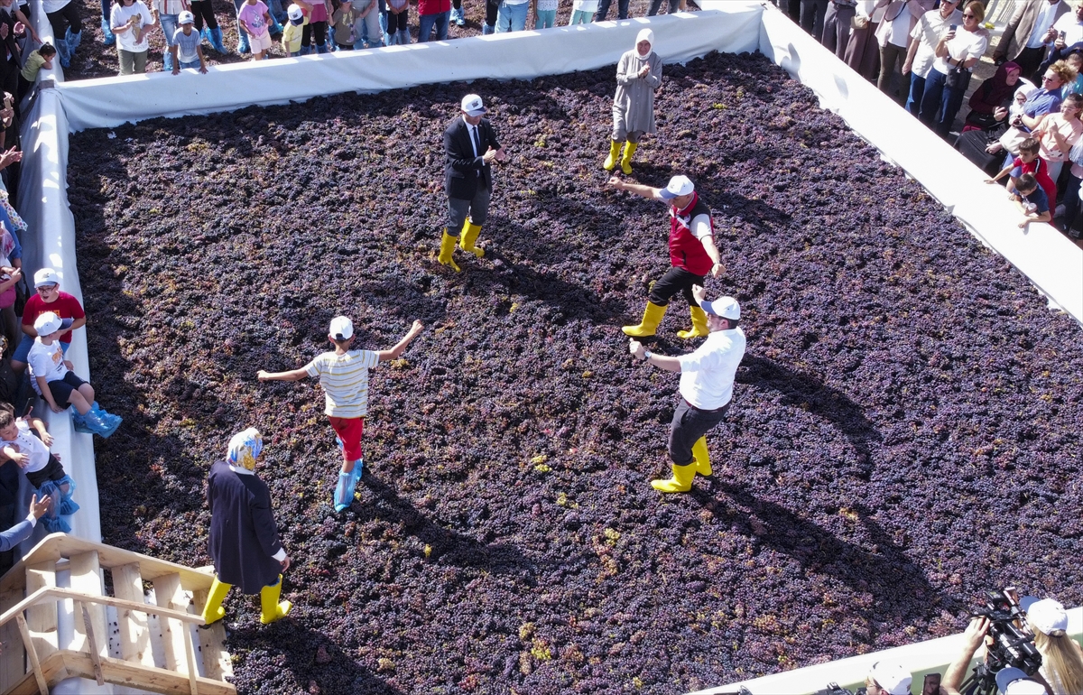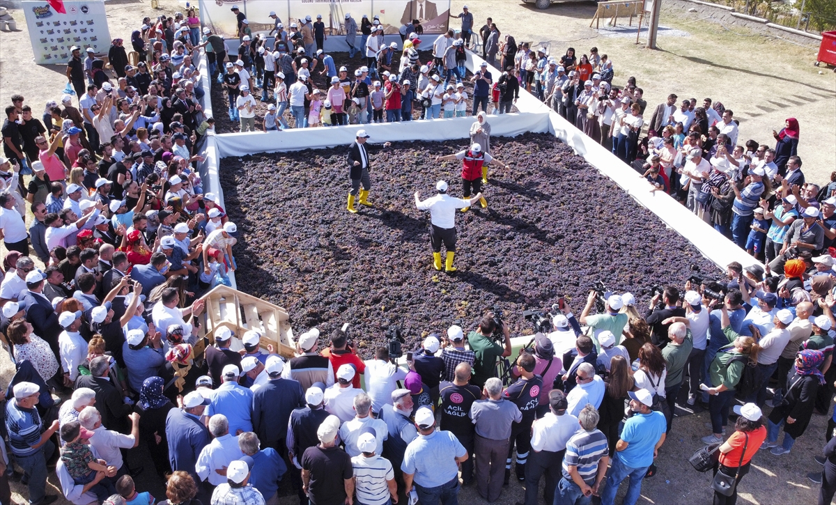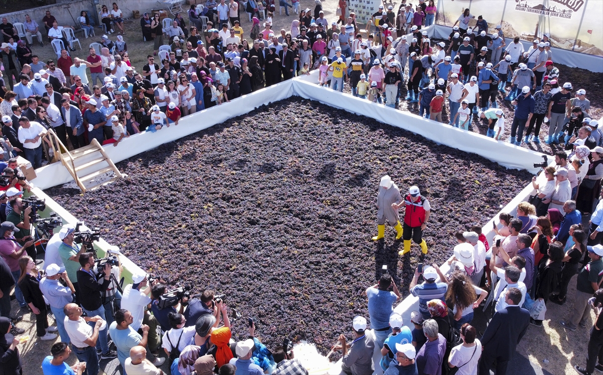 Kirişci, buradaki bir havuzda şıra yapımı için bekletilen üzümleri, Ankara oyun havası eşliğinde, çocukların da dahil olduğu bir kalabalıkla çiğnedi.