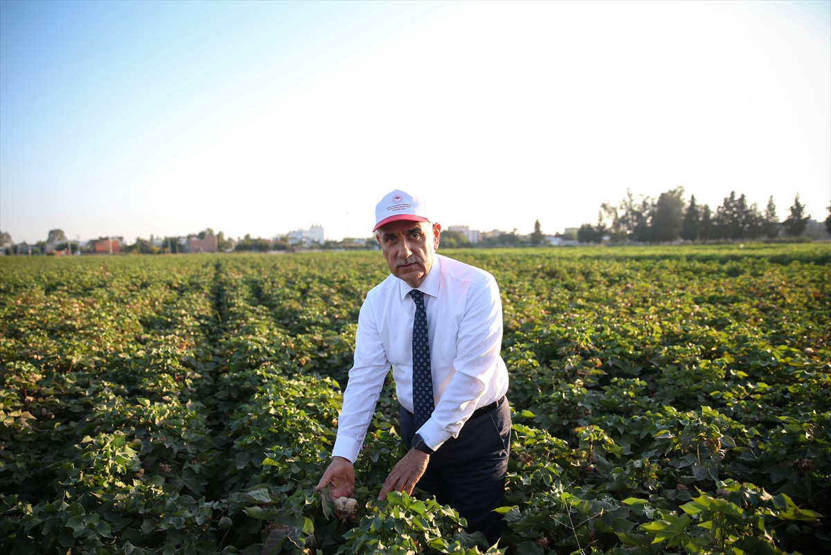 ADANA (AA) – Tarım ve Orman Bakanı Vahit Kirişci, Adana'nın Karataş ilçesinde önce biçerdöverle, ardından elle pamuk hasat etti.