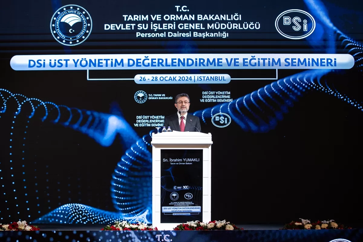 Bakan Yumaklı, Devlet Su İşleri (DSİ) Üst Yönetim Değerlendirme ve Eğitim Semineri'nde yaptığı konuşmada, hayatın kaynağı olan suyun hayatın devamlılığı için de bir o kadar önemli olduğunu söyledi.