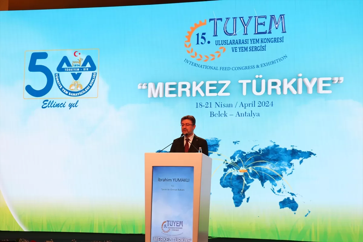 Yumaklı, Antalya'nın Belek Turizm Merkezi'nde Türkiye Yem Sanayicileri Birliğinin düzenlediği "15. Uluslararası Yem Kongresi ve Yem Sergisi"nin açılışında, tohumdan çatala kadar olan yolculuktaki en önemli duraklardan birinin de yem sektörü olduğunu söyledi.
