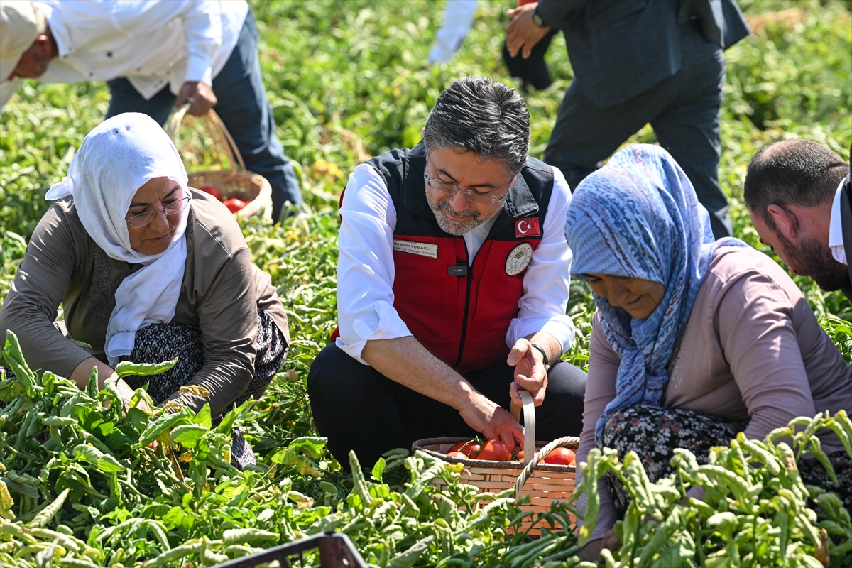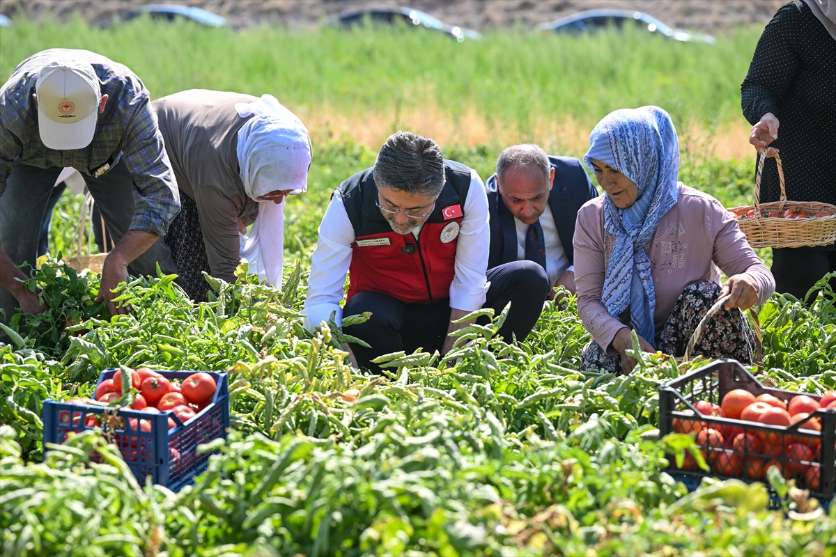 Yumaklı, Ankara'nın Ayaş ilçesinde gerçekleştirilen domates hasadına katılarak, ürün topladı.