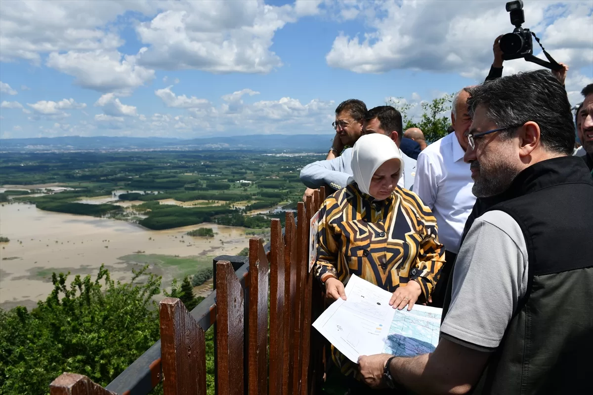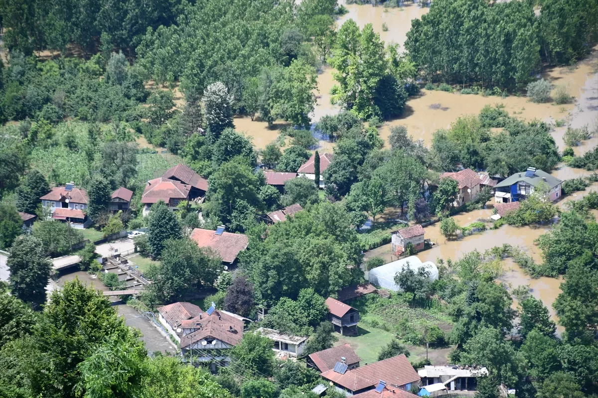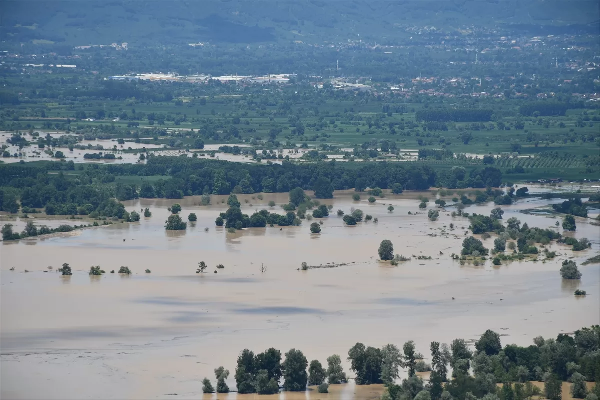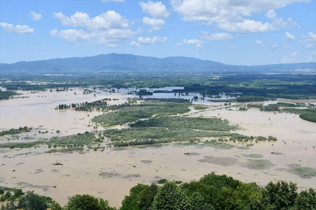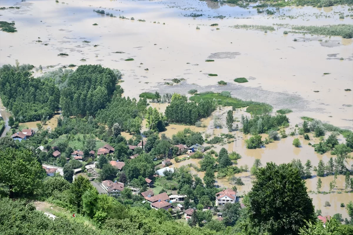 Gölyaka ilçesine bağlı Toptepe kırsalında incelemelerde bulunan Yumaklı, yaklaşık 500 metre rakımdaki seyir terasından sular altında kalan ekili araziler ile ormanlık alanı gözlemledi.
