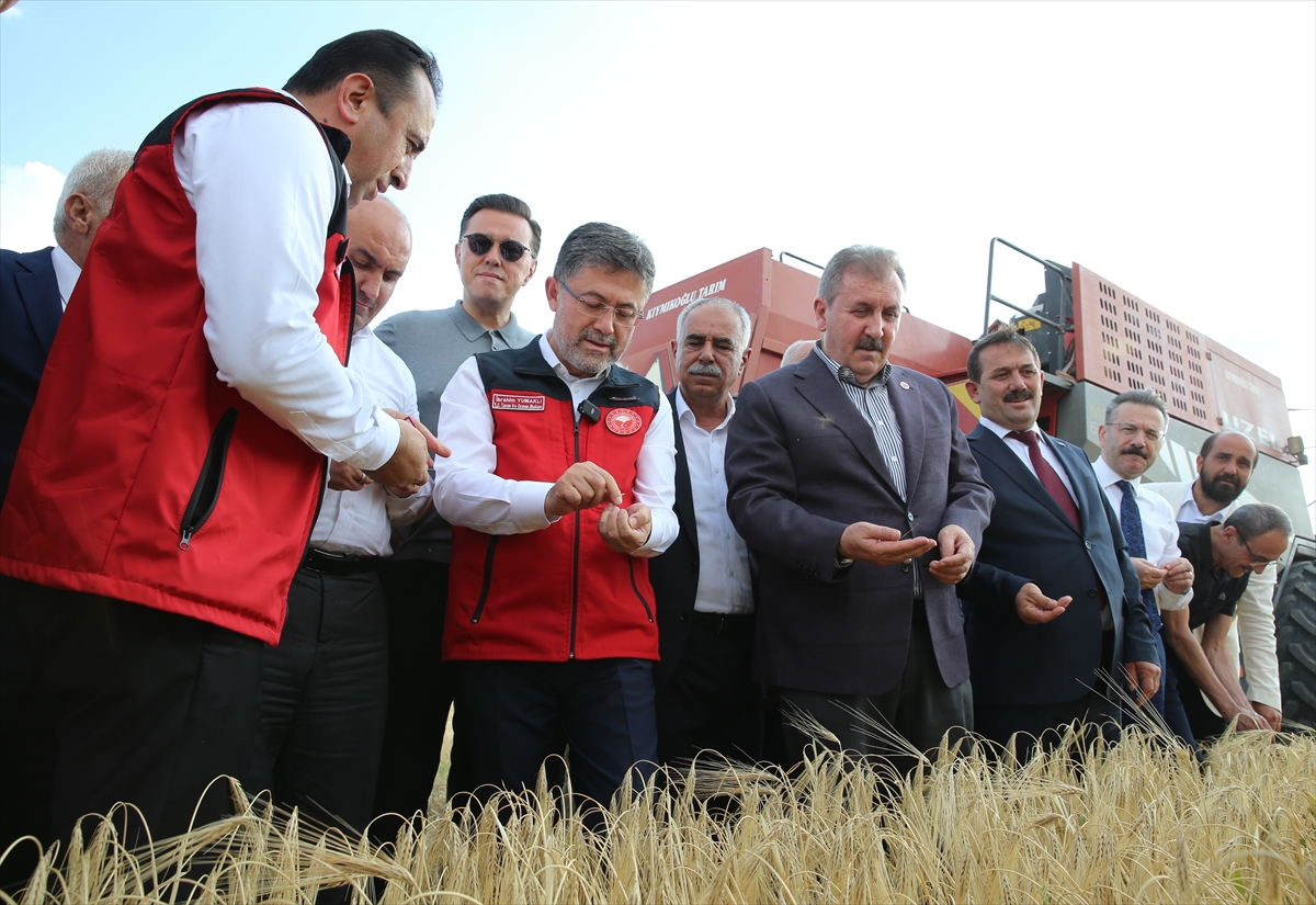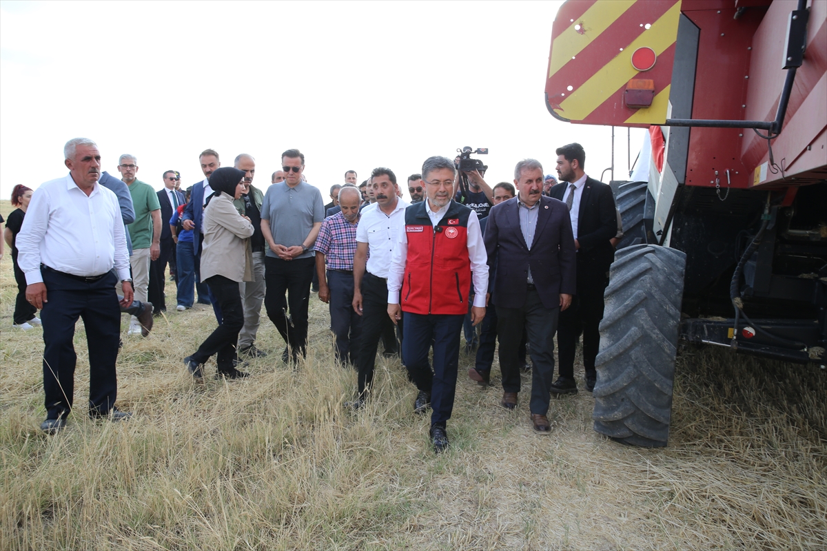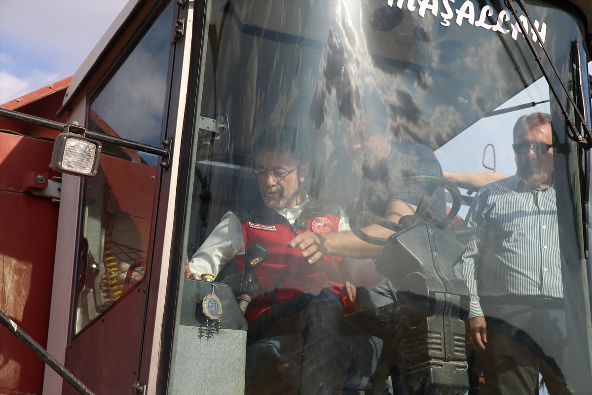 Günyüzü ilçesine bağlı Gökpınar Mahallesi'nde Oğuzhan Kıymıkoğlu'na ait arpa tarlasında hasada katılan Bakan Yumaklı, biçerdöver kullandı.