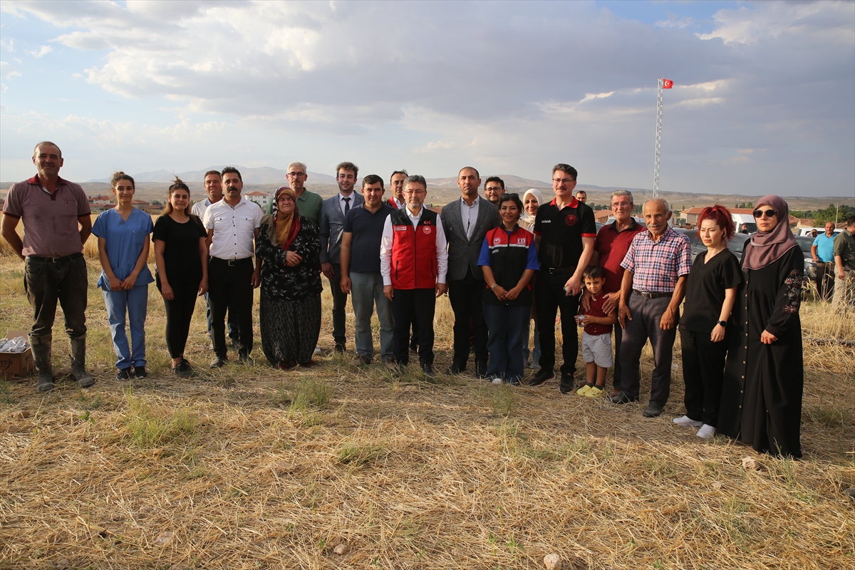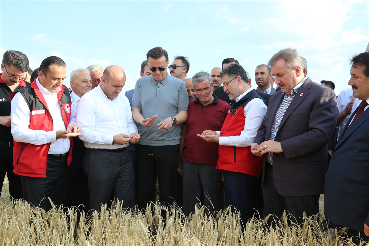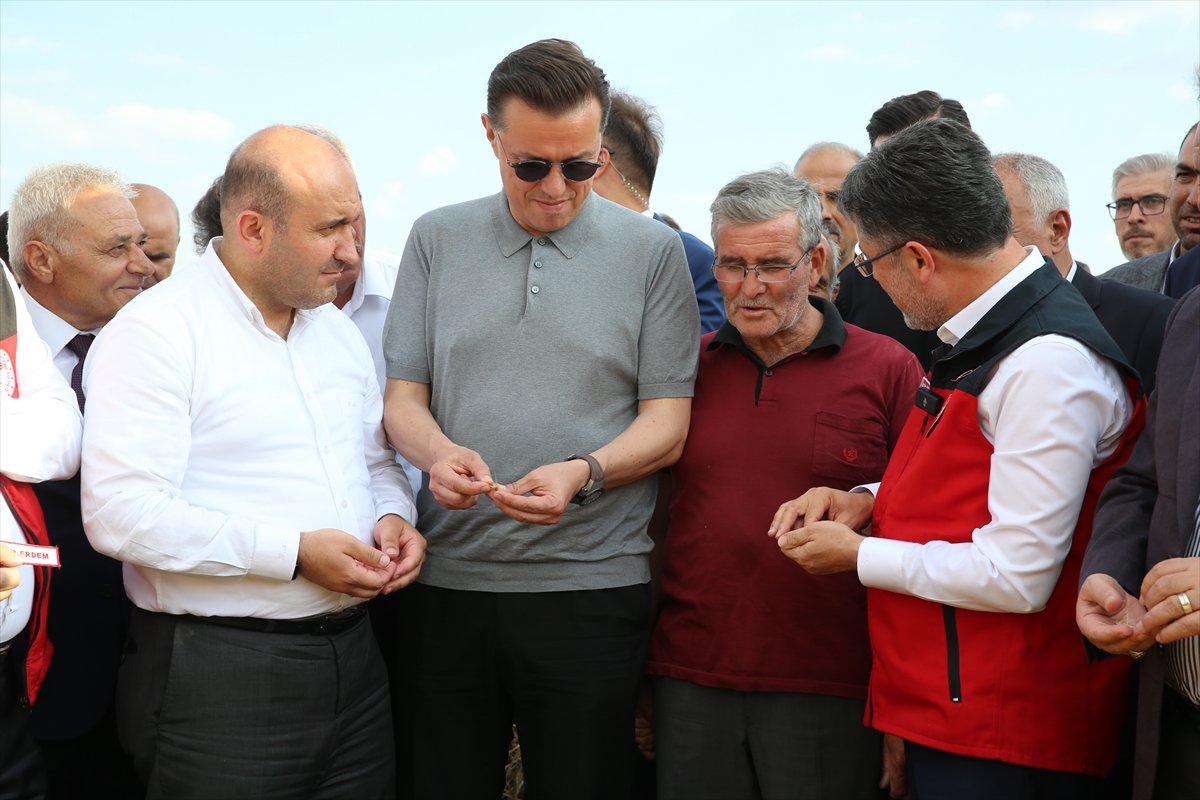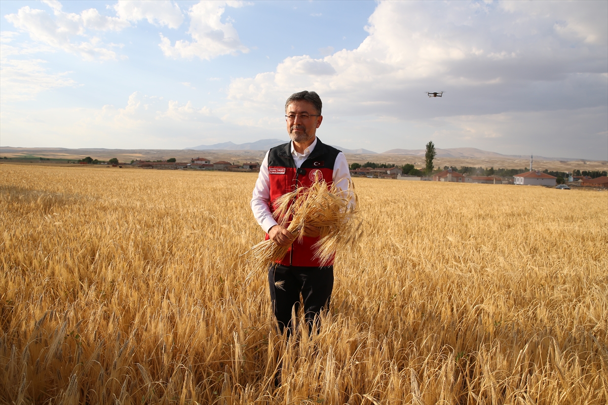 Günyüzü ilçesine bağlı Gökpınar Mahallesi'nde Oğuzhan Kıymıkoğlu'na ait arpa tarlasında hasada katılan Bakan Yumaklı, biçerdöver kullandı.