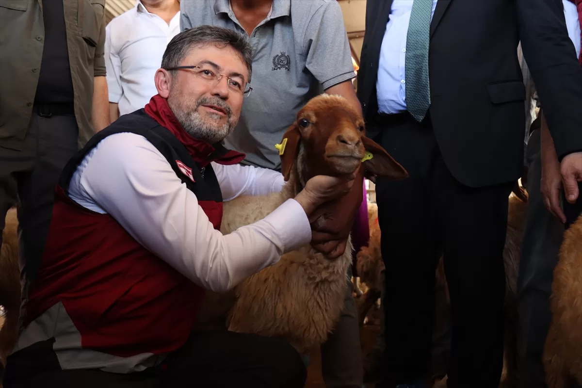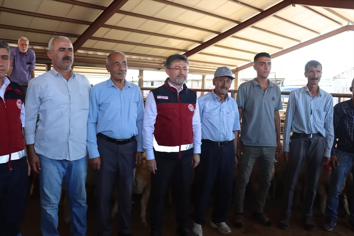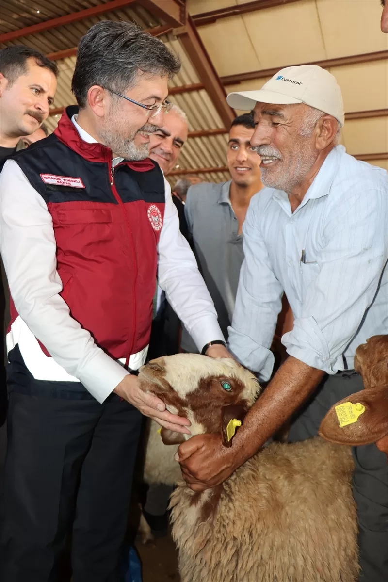 Adıyaman Canlı Hayvan Pazarı'nı gezen Yumaklı, besicilerle görüşerek, depremde hayvanları telef olan depremzedelere hayvanlarını teslim etti.