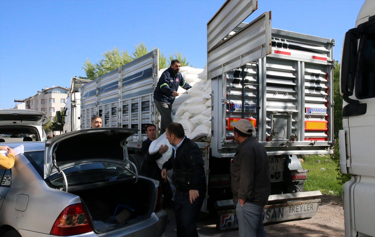 Türkiye Şeker Fabrikaları AŞ'den (TÜRKŞEKER) temin edilen ve Sivas Arı Yetiştiricileri Birliği önüne tırlarla getirilen şekerler, 50 kilogramlık çuvalı 430 liradan üreticilere teslim edildi.