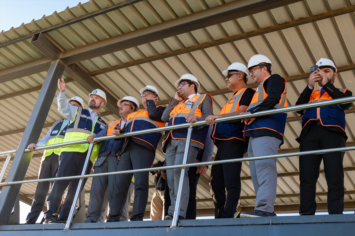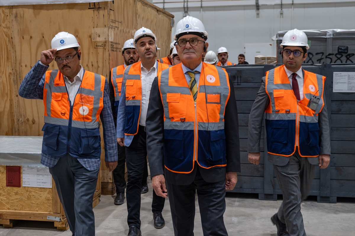 İş güvenliği brifinginin ardından inşa halindeki santralin güç ünitelerinin panoramasını sunan sahanın en yüksek noktasını ziyaret eden heyet, Akkuyu NGS'nin 2'nci ve 4'üncü üniteleri için getirilen türbin ve reaktör bileşenleri başta olmak üzere, büyük boyutlu ekipmanların depolandığı alanı görme fırsatı buldu.