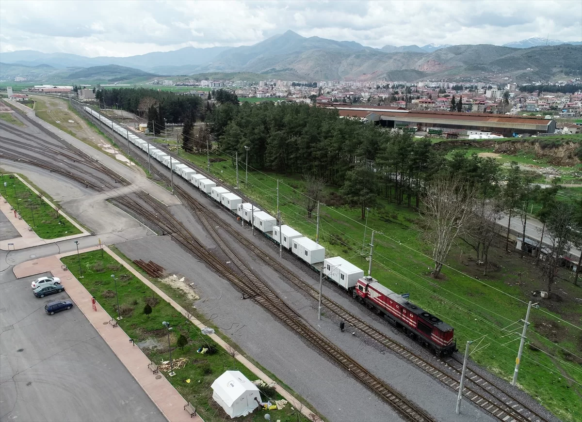 KAHRAMANMARAŞ (AA) – Hayırseverler ve çeşitli kurumların desteğiyle temin edilen konteynerler ve yaşam malzemeleri, TCDD'nin düzenlediği seferlerle deprem bölgesine ulaştırılıyor.