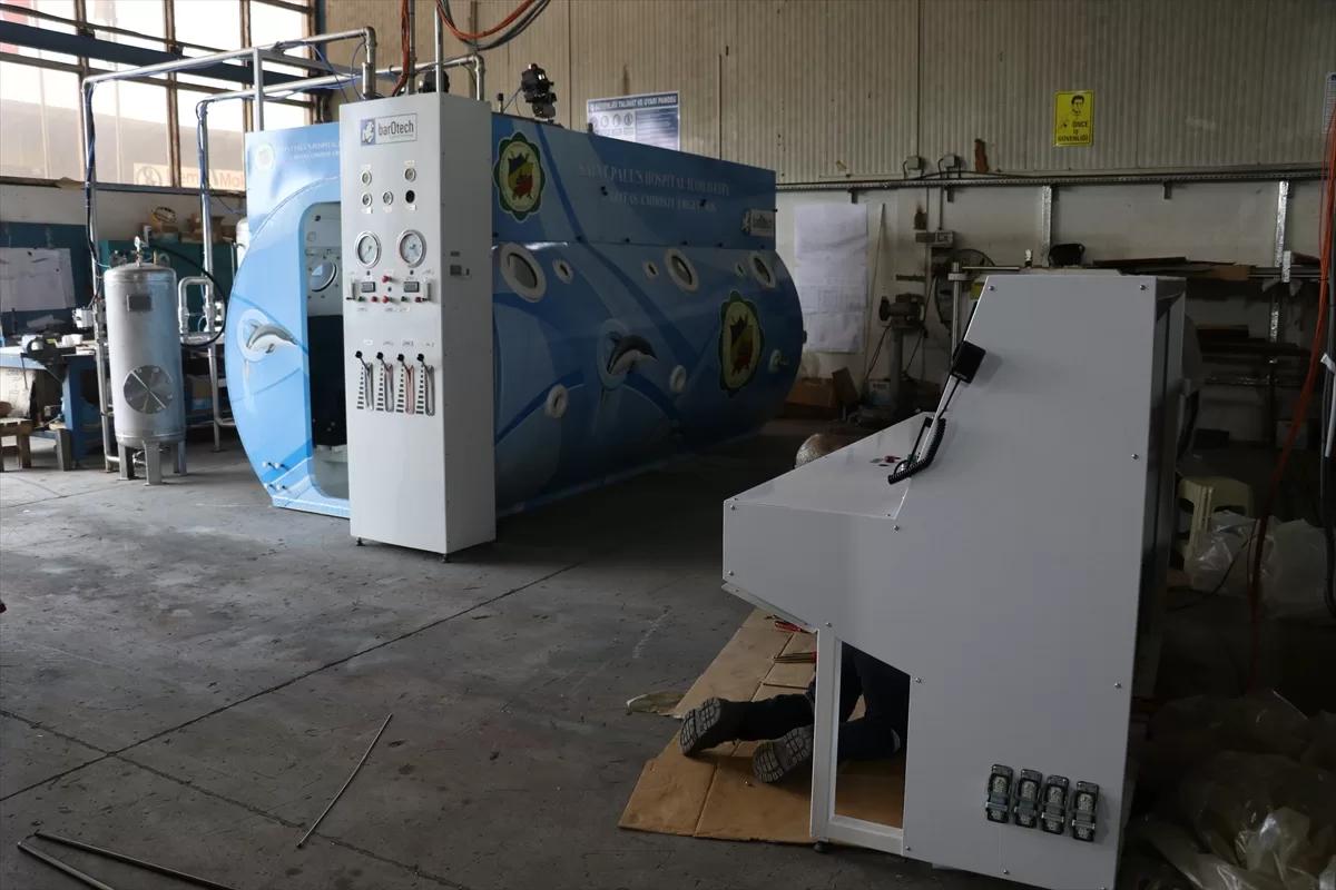 Çiftlikköy ilçesindeki Taşköprü Sanayi Sitesi'nde, başta dalgıçlar için kullanılmak üzere yanık, yaralanma, diyabetik rahatsızlıklar, zehirlenme gibi birçok hastalıkta tedavi amaçlı yararlanılan hiperbarik oksijen basınç odası üreten firma, ürünlerini 8 ülkeye gönderiyor.