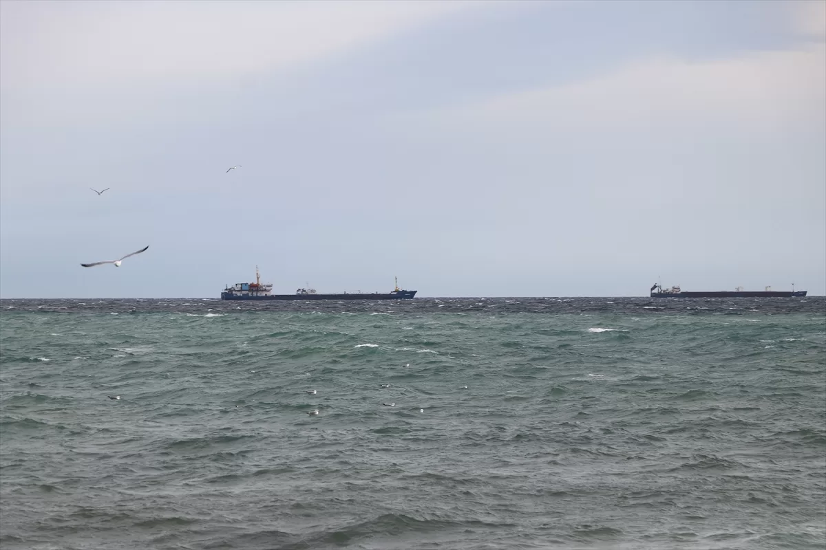Hızı zaman zaman 60 kilometreye ulaşan lodos nedeniyle yerli ve yabancı bandıralı 8 şilep ve tanker, Tekirdağ sahiline demirledi.