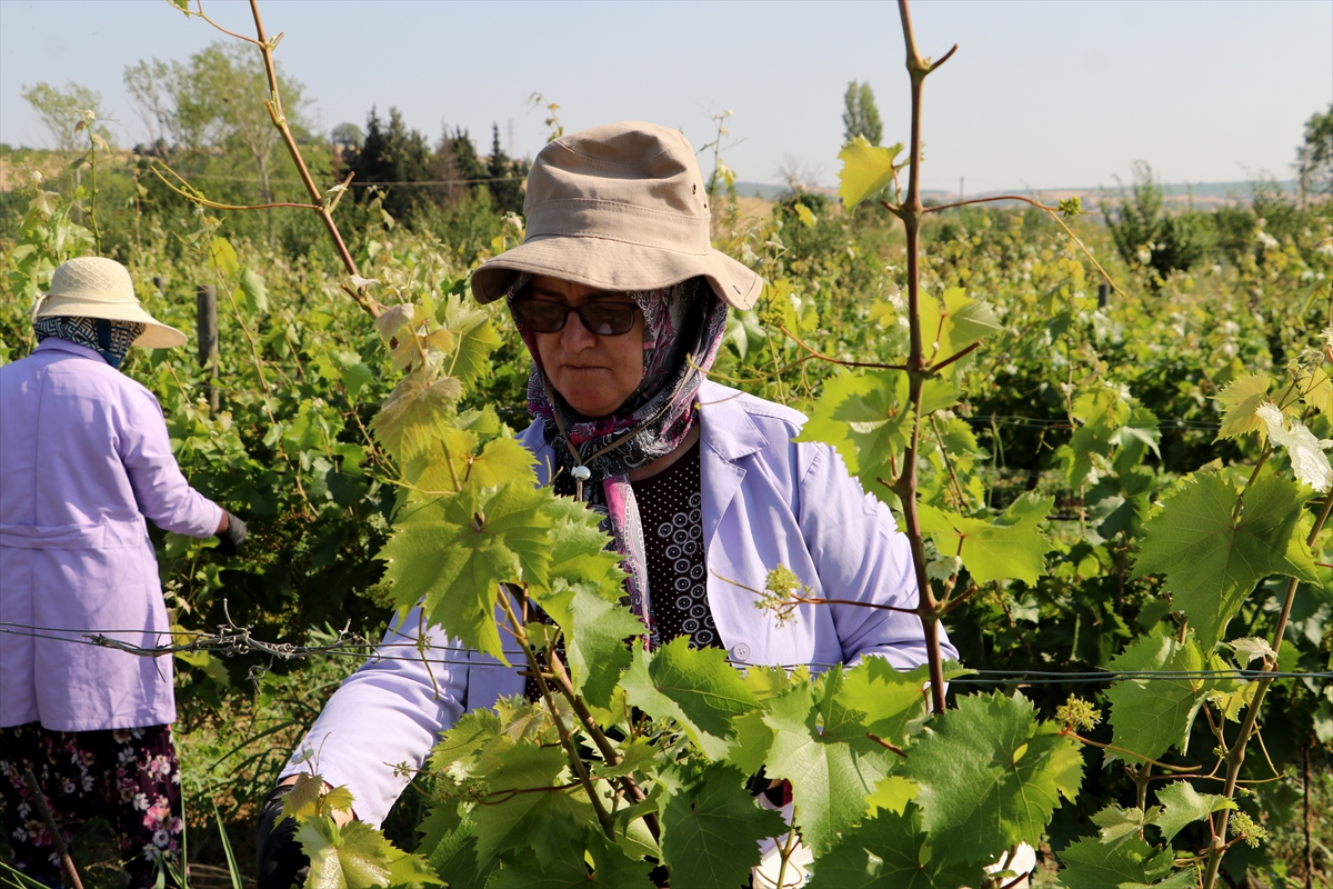TEKİRDAĞ (AA) – Tekirdağ'da "kınalı yapıncak" olarak adlandırılan meşhur Yapıncak üzümünün tescil edilen tüysüz ve narin yapılı asma yaprağının hasadına başlandı.
