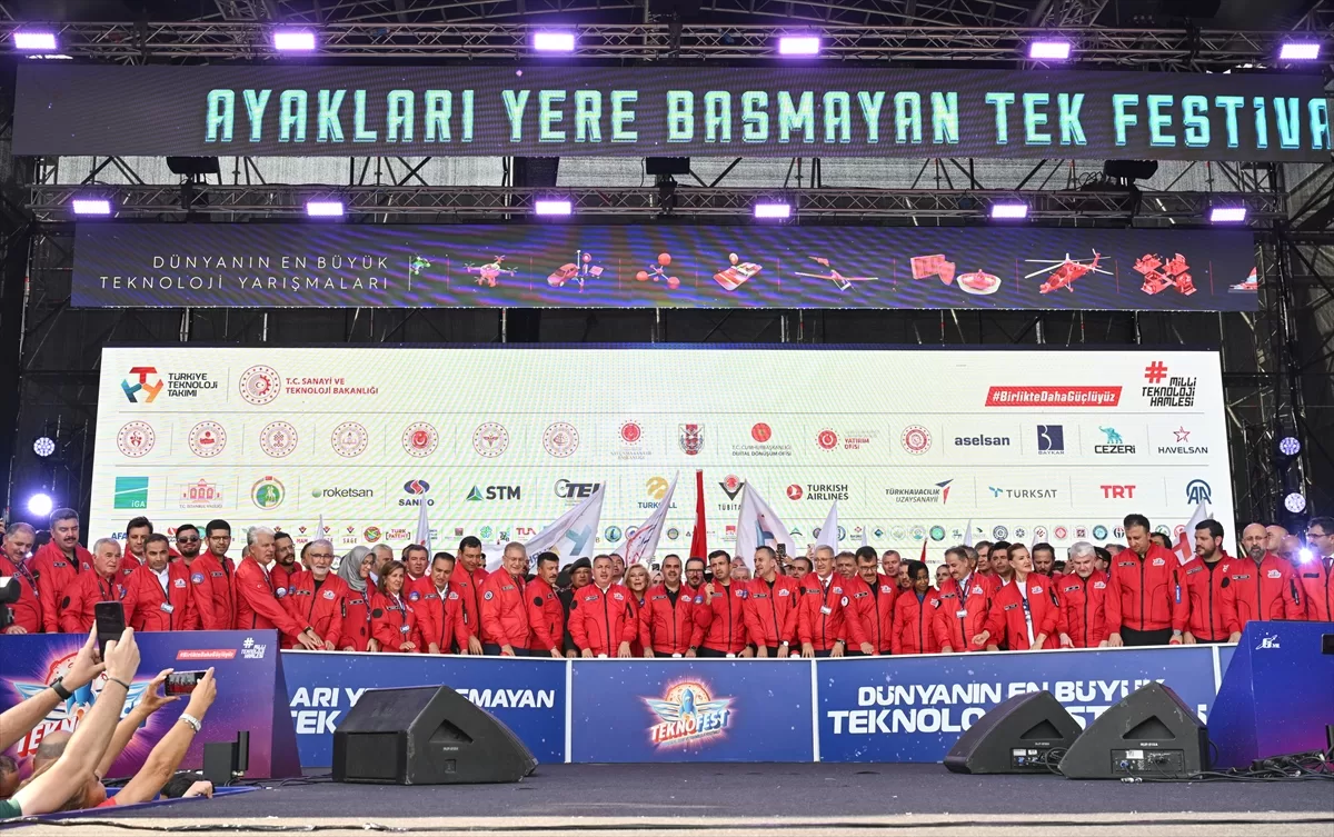 AA'nın 9. kez global iletişim ortağı olduğu Çiğli Havaalanı'ndaki TEKNOFEST'in açılış töreni, ana sahnedeki görsel animasyon gösterisi ve TEKNOFEST Marşı'nın icrasıyla başladı.