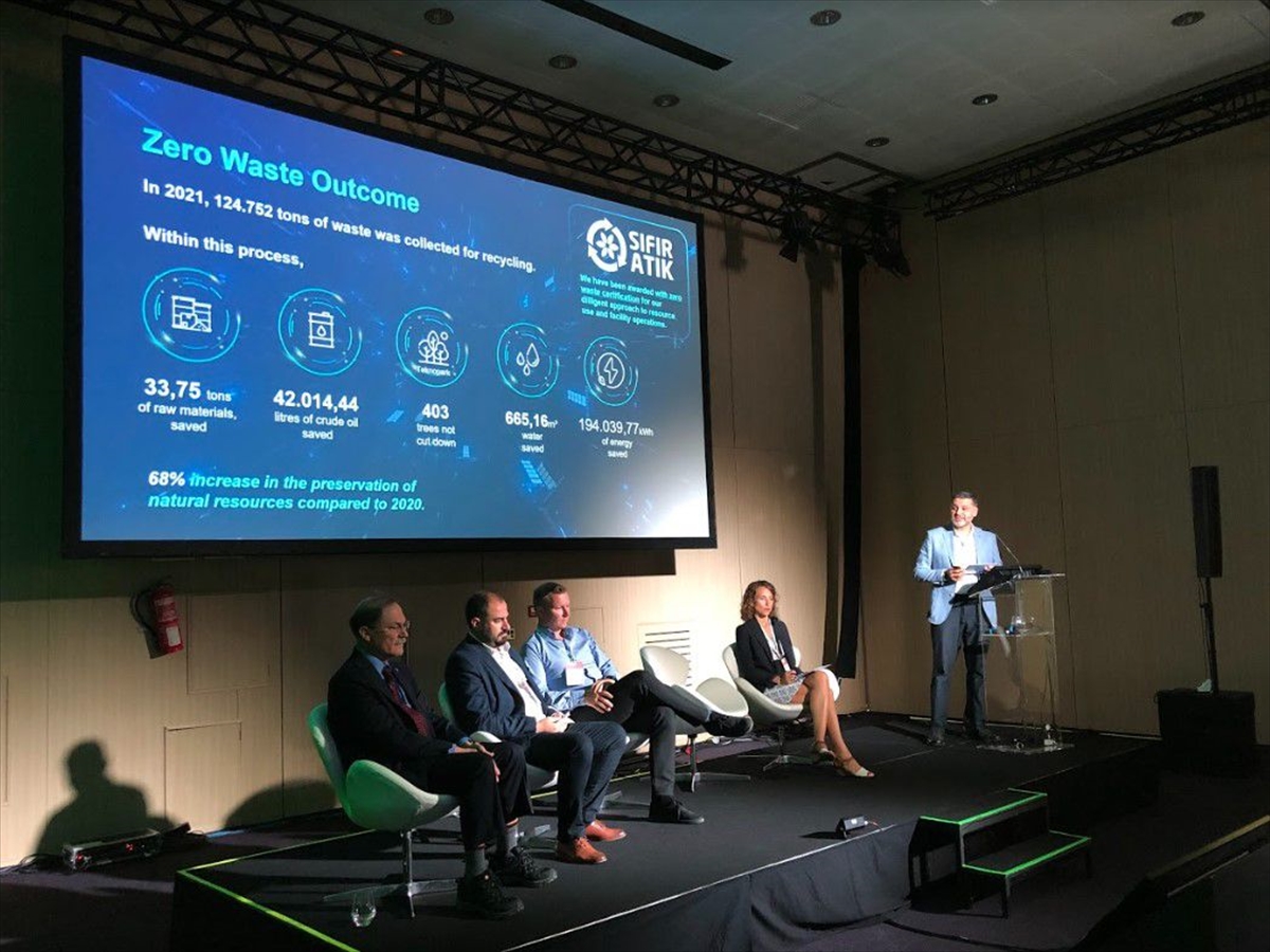Topçu, döngüsel ekonominin iklim değişikliği, biyolojik çeşitlilik kaybı, atık ve kirlilik gibi küresel zorluklarla mücadele eden bir sistem çözümü çerçevesi olduğunu aktararak, Teknopark İstanbul'un sıfır atık belgesi alan ilk teknopark olduğunu kaydetti.